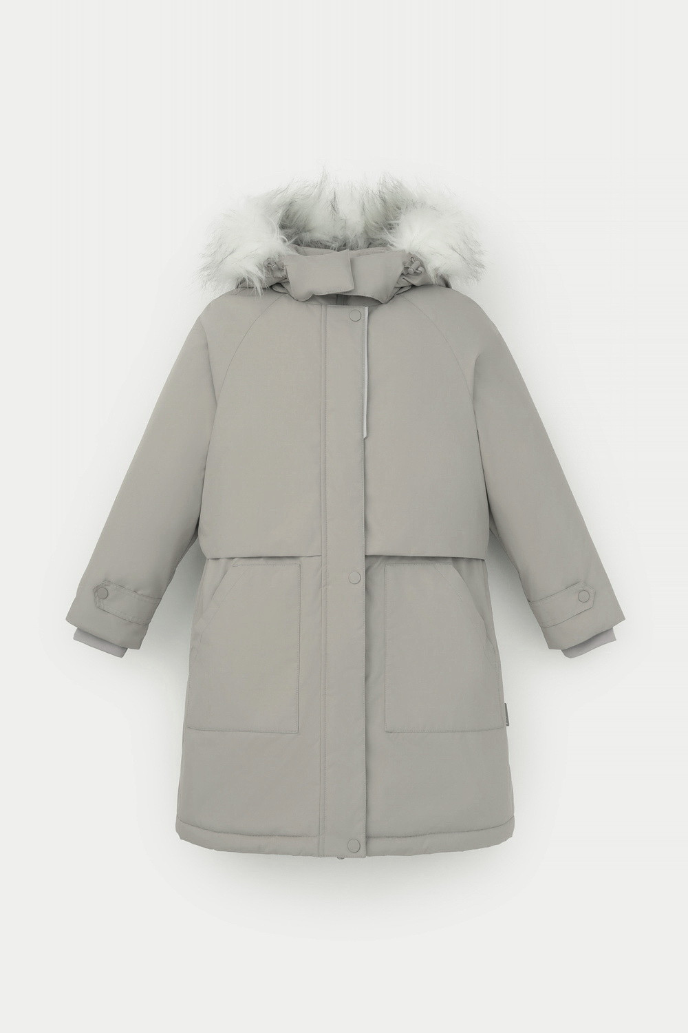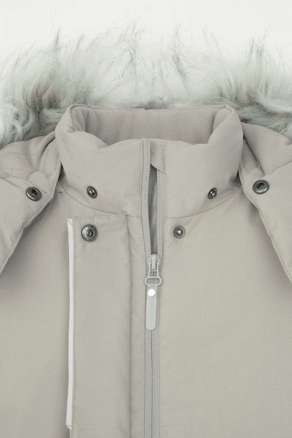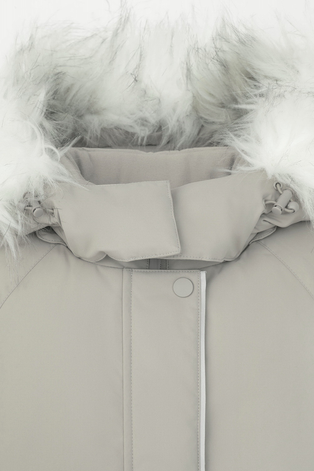 • Съемный капюшон на липучках с отстегивающимся искусственным мехом и утяжкой со стопперами по бокам капюшона.