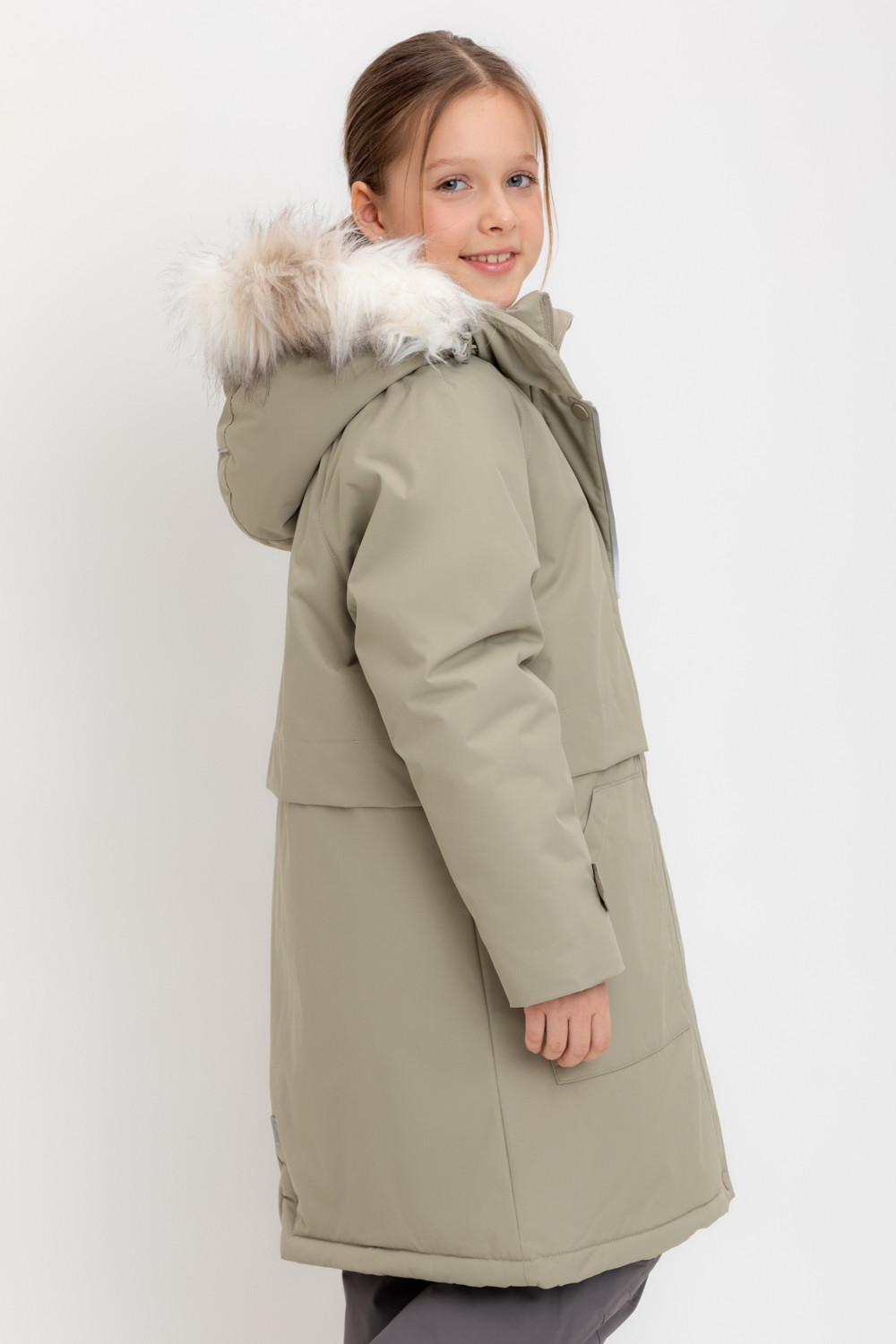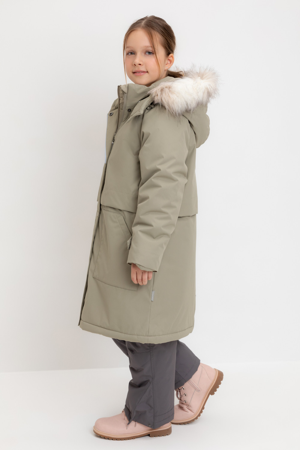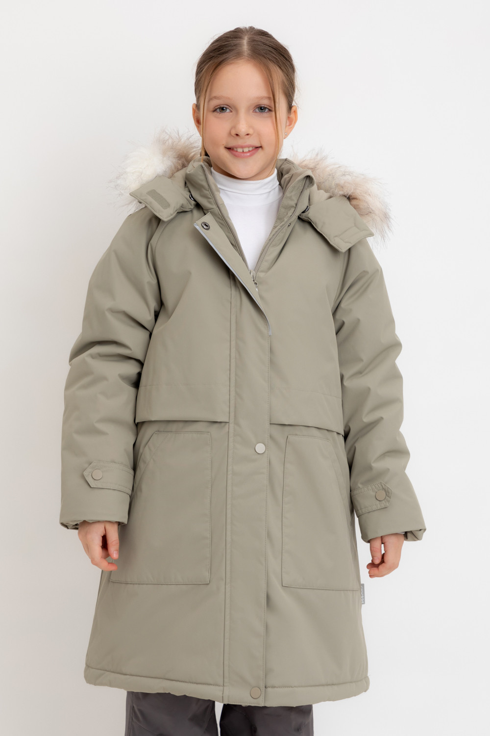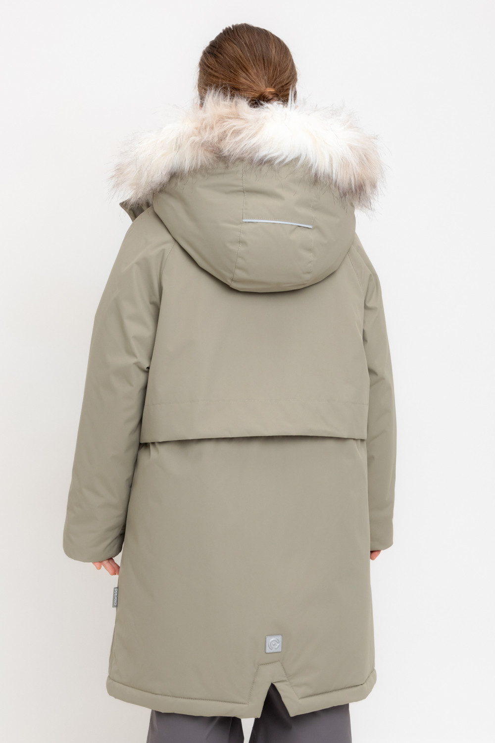 • Съемный капюшон на липучках с отстегивающимся искусственным мехом и утяжкой со стопперами по бокам капюшона.
