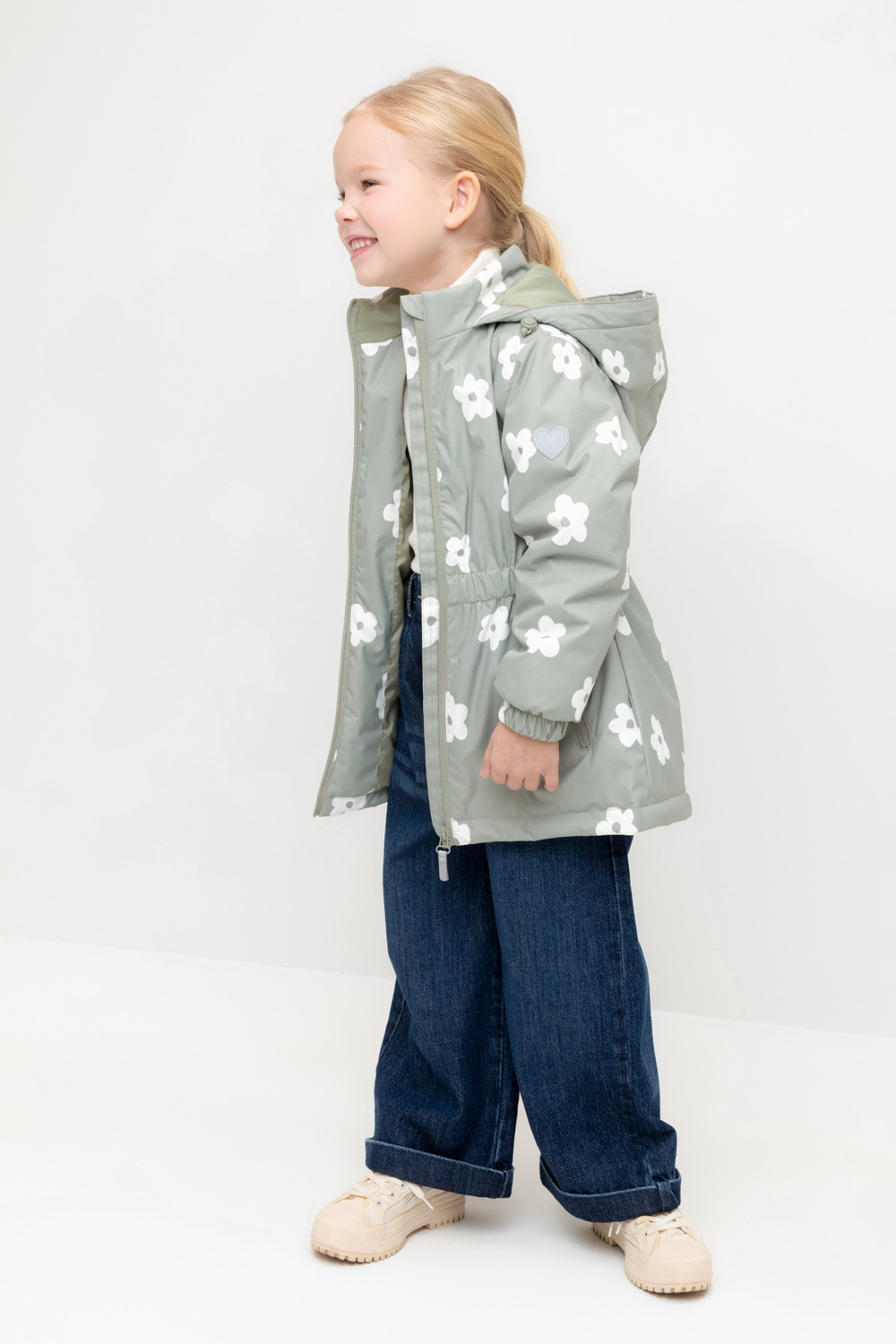 Демисезонная куртка для девочки с утеплителем SEE®: 120 г/м2. Выполнена из мембранной ткани с дополнительной тефлоновой обработкой. Данный вид обработки предохраняет изделие от загрязнения и лучше отводит влагу. Подклад из 100% полиэстера. У изделия предусмотрена защита подбородка. Несъемный капюшон регулируется с помощью эластичной утяжки со стопперами. Низ рукавов и пояс изделия имеют эластичную резинку для лучшего прилегания. По бокам два кармана на молнии. Во всех изделиях верхнего ассортимента для безопасности ребенка предусмотрены светоотражающие элементы.