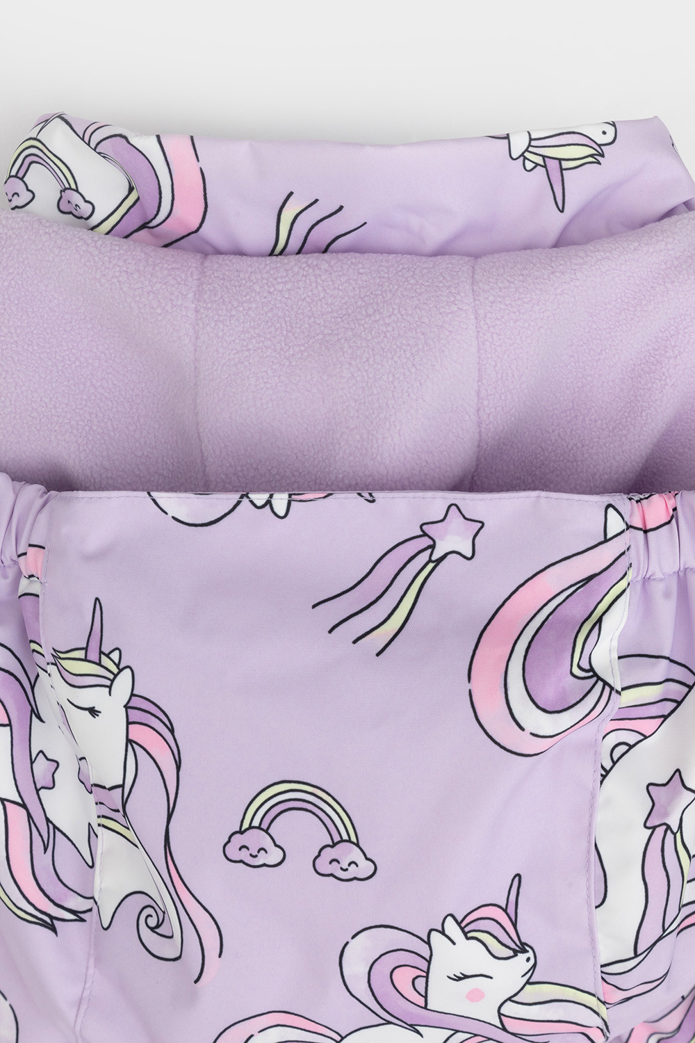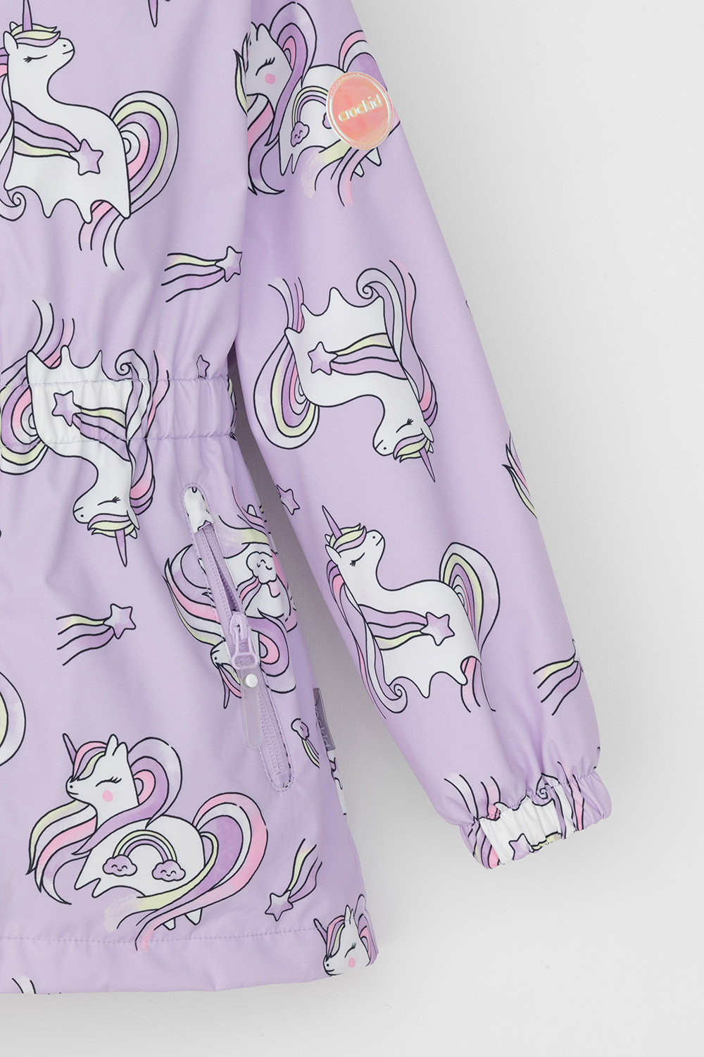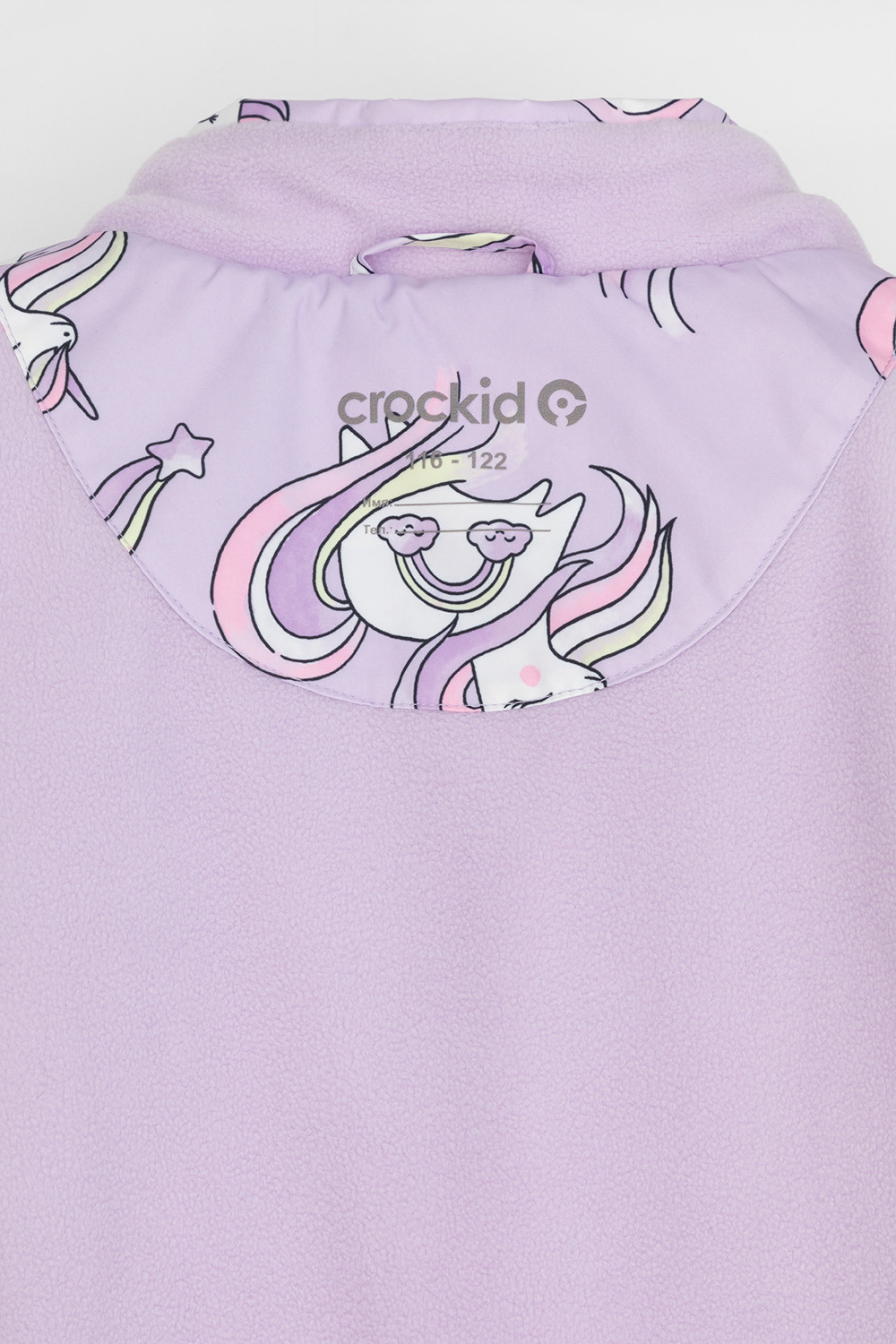 Ветровка для девочки из мембранной ткани с дополнительной тефлоновой обработкой. Верхняя мембранная ткань 1000/1000 с тефлоновым покрытием отталкивает воду и грязь и обладает «дышащими» свойствами. Подкладка выполнена из флиса, 100% полиэстер. У изделия предусмотрена защита подбородка. Несъемный капюшон регулируется с помощью эластичного шнура со стопперами. Низ рукавов и пояс изделия имеют эластичные резинки для лучшего прилегания. Во всех изделиях верхнего ассортимента для безопасности ребенка предусмотрены светоотражающие элементы.