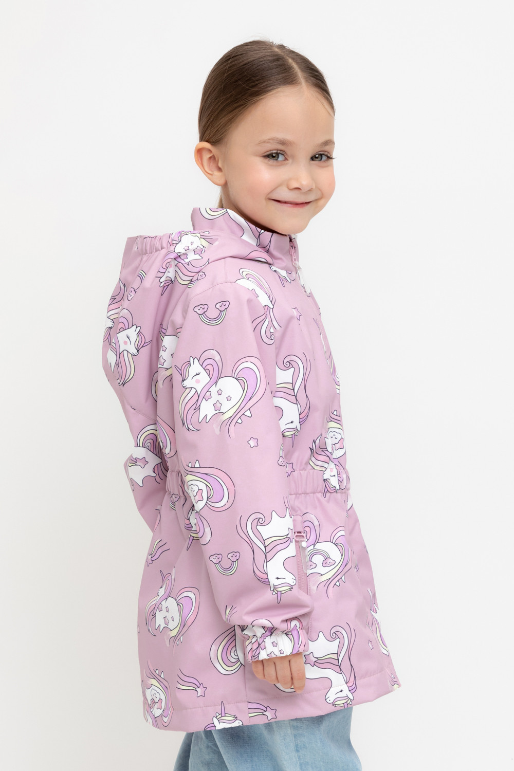 Ветровка для девочки из мембранной ткани с дополнительной тефлоновой обработкой. Верхняя мембранная ткань 1000/1000 с тефлоновым покрытием отталкивает воду и грязь и обладает «дышащими» свойствами. Подкладка выполнена из флиса, 100% полиэстер. У изделия предусмотрена защита подбородка. Несъемный капюшон регулируется с помощью эластичного шнура со стопперами. Низ рукавов и пояс изделия имеют эластичные резинки для лучшего прилегания. Во всех изделиях верхнего ассортимента для безопасности ребенка предусмотрены светоотражающие элементы.