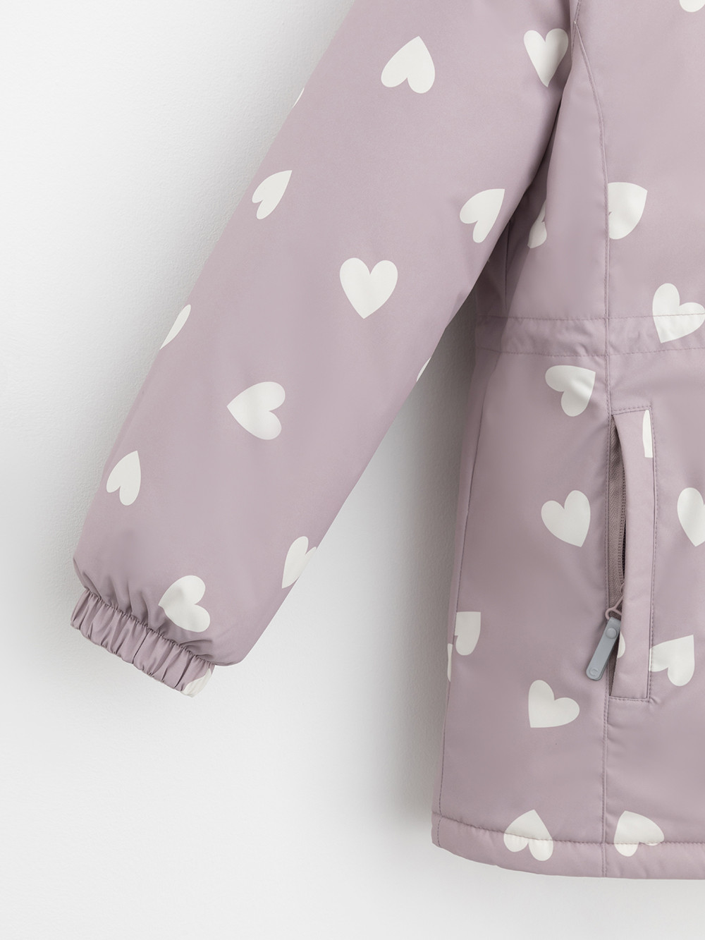 Зимняя куртка для девочки с утеплителем SEE®: 300 г/м2. Выполнена из мембранной ткани с дополнительной тефлоновой обработкой, которая предохраняет изделие от загрязнений и отталкивает влагу. Подклад выполнен из 100% полиэстера Tricot. Куртка застёгивается на молнию, предусмотрена защита подбородка. Съёмный капюшон на кнопках и липучках имеет отстёгивающийся искусственный мех. На рукавах эластичные манжеты на резинке. По бокам два кармана на молниях. По талии эластичная утяжка со стопперами для регулировки ширины куртки. Во всех изделиях верхнего ассортимента для безопасности ребёнка предусмотрены светоотражающие элементы.