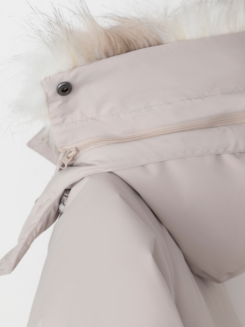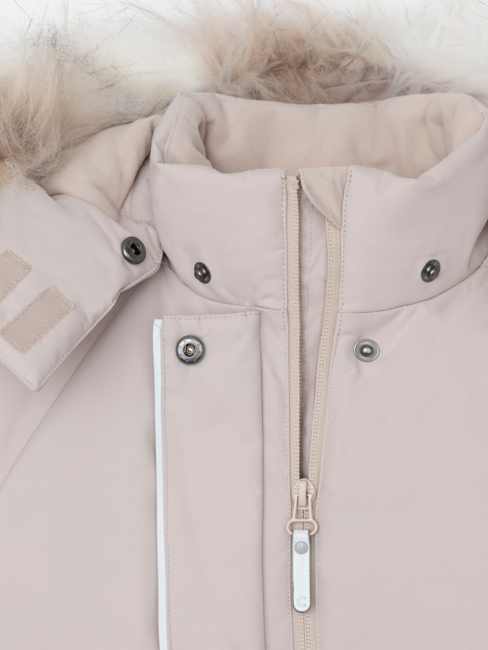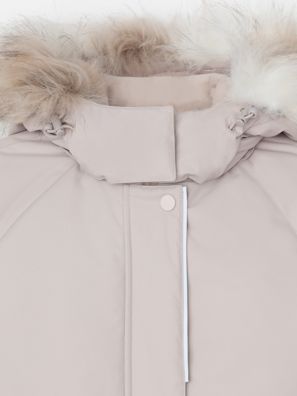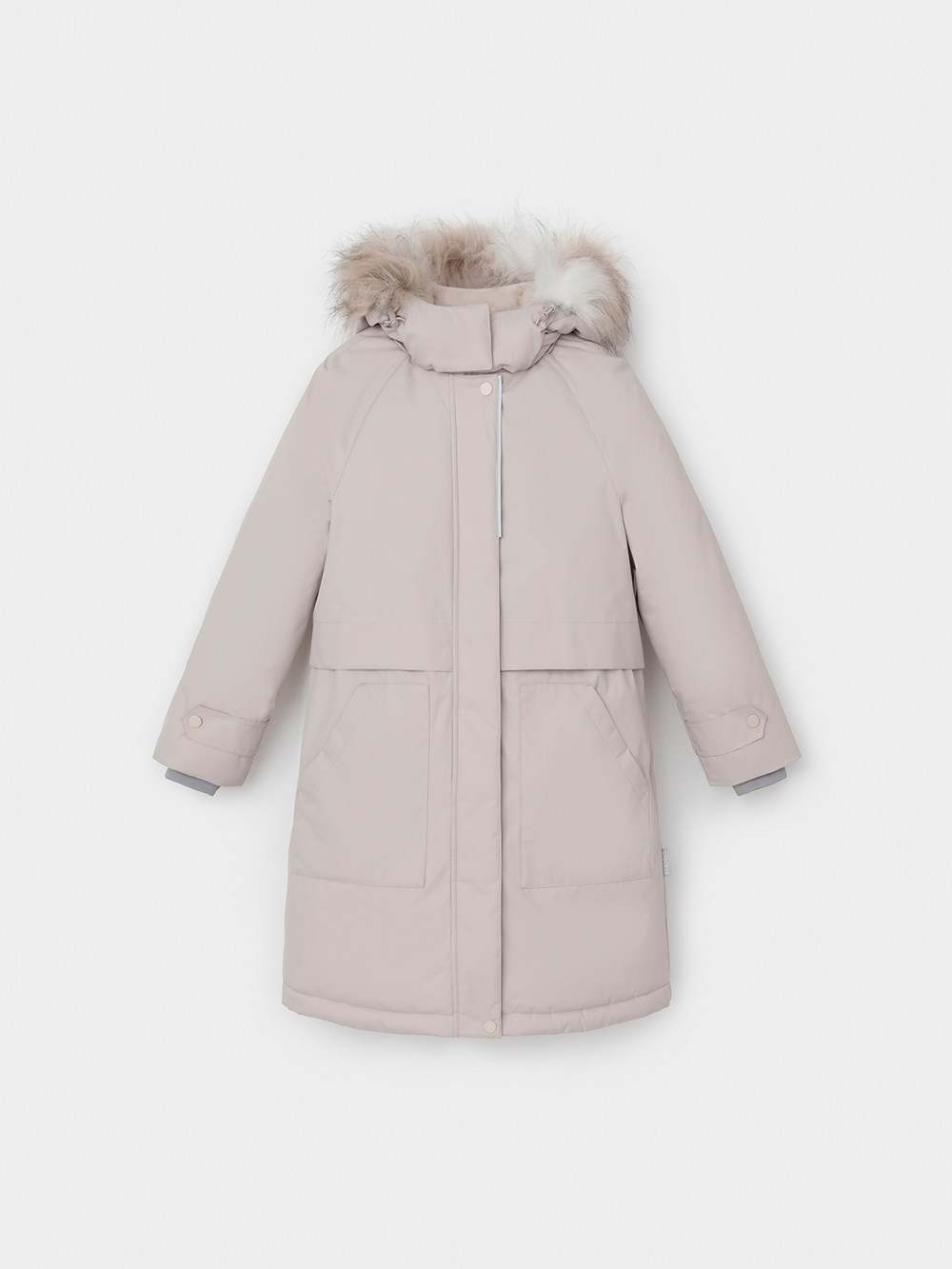 Зимняя удлинённая куртка для девочки с утеплителем SEE®: 250 г/м2. Выполнена из мембранной ткани с дополнительной тефлоновой обработкой, которая предохраняет изделие от загрязнений и отталкивает влагу. Подклад выполнен из 100% полиэстера Tricot. Куртка застёгивается на молнию, предусмотрена защита подбородка. Съёмный капюшон на кнопках и липучках имеет отстёгивающийся искусственный мех. На рукавах мягкие манжеты. По бокам два кармана с клапанами, внутри карман на молнии. По талии эластичная утяжка со стопперами для регулировки ширины пальто. Во всех изделиях верхнего ассортимента для безопасности ребёнка предусмотрены светоотражающие элементы.