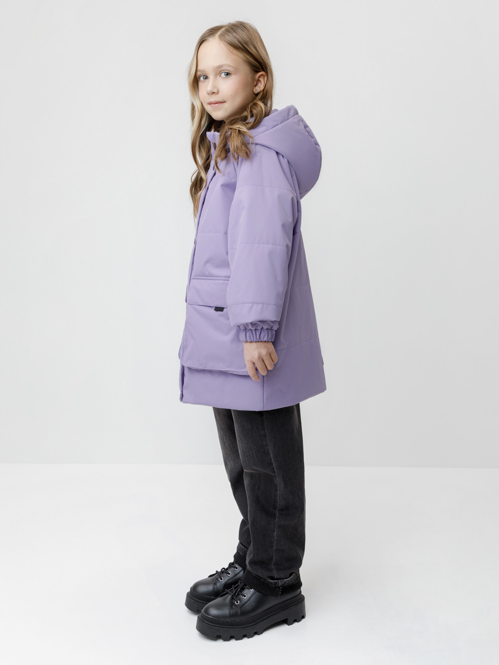 Демисезонная куртка для девочки с утеплителем Fellex®: 120 г/м2. Выполнена из мембранной ткани с тефлоновой обработкой. Данный вид обработки предохраняет изделие от загрязнения и хорошо отталкивает влагу. Подклад выполнен из 100% полиэстера. Куртка застёгивается на молнию и дополнительно защищена внешней ветрозащитной планкой на липучках. Предусмотрена защита подбородка. Несъёмный капюшон имеет эластичную утяжку со стопперами. Низ рукавов на эластичной резинке для лучшего прилегания. По бокам два кармана на клапанах. Во всех изделиях верхнего ассортимента для безопасности ребёнка предусмотрены светоотражающие элементы.