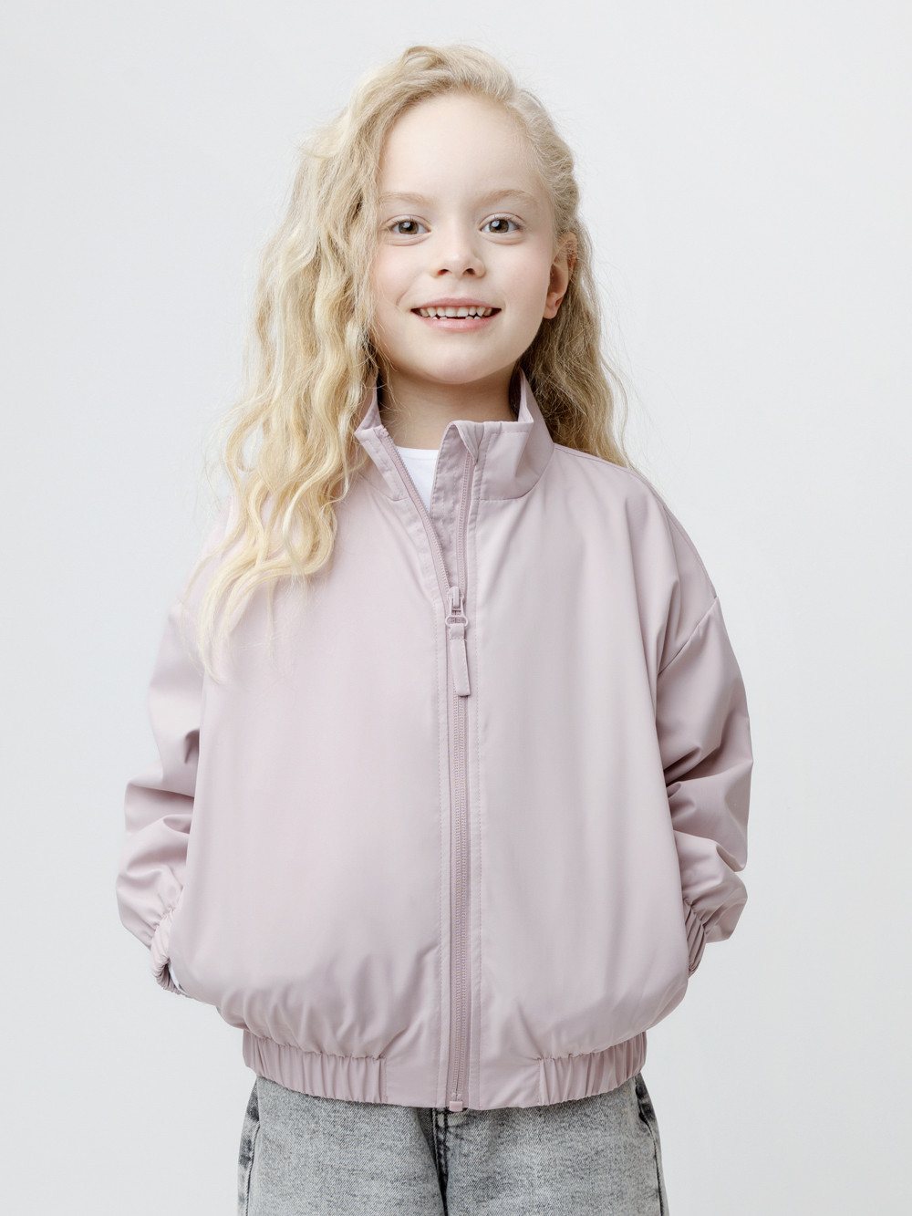 Ветровка для девочки из ткани с дополнительной тефлоновой обработкой. Верхний слой обеспечивает надёжную влагостойкость и воздухопроницаемость. Подклад из 100% полиэстера. У изделия удобная застёжка на молнию и воротник-стойка. На рукавах эластичные манжеты. Эластичная резинка по низу изделия. По бокам два удобных кармана. Светоотражающие элементы служат для дополнительной безопасности в тёмное время суток.