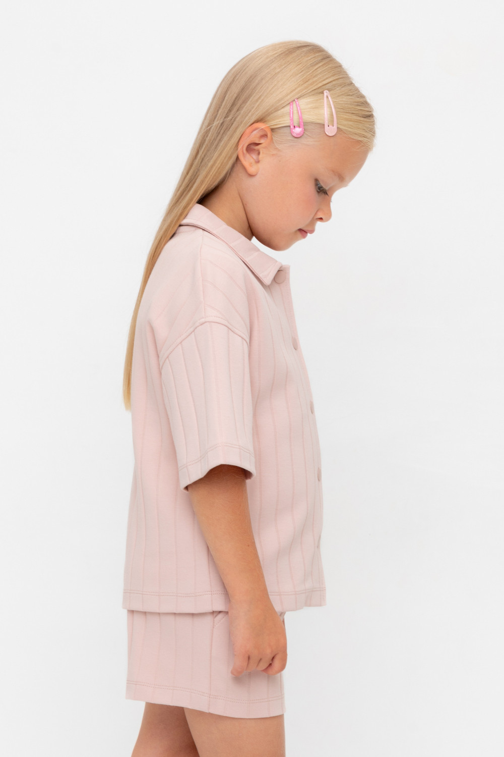 Рубашка для девочки из мягкого высококачественного трикотажа интерлок. Застёгивается на кнопки. Модель со спущенным плечом.