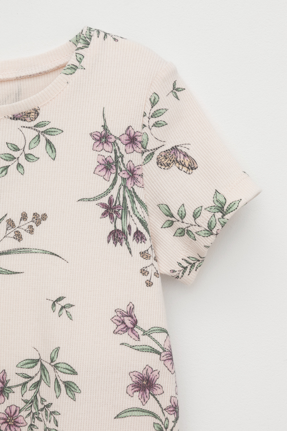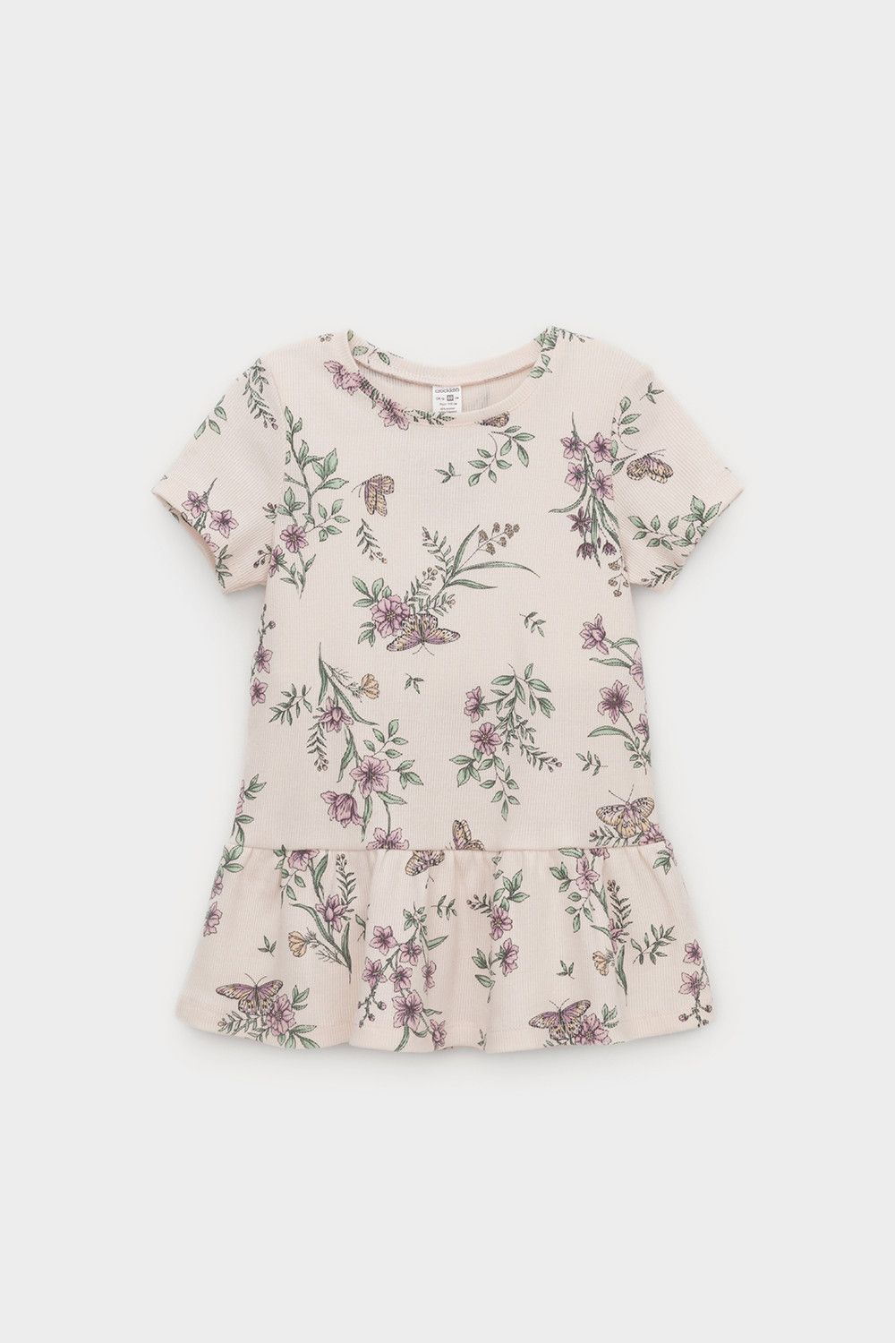 Летняя туника для девочки из эластичного трикотажа в рубчик. Оригинальная набивка выполнена из стойких текстильных гипоаллергенных красителей.