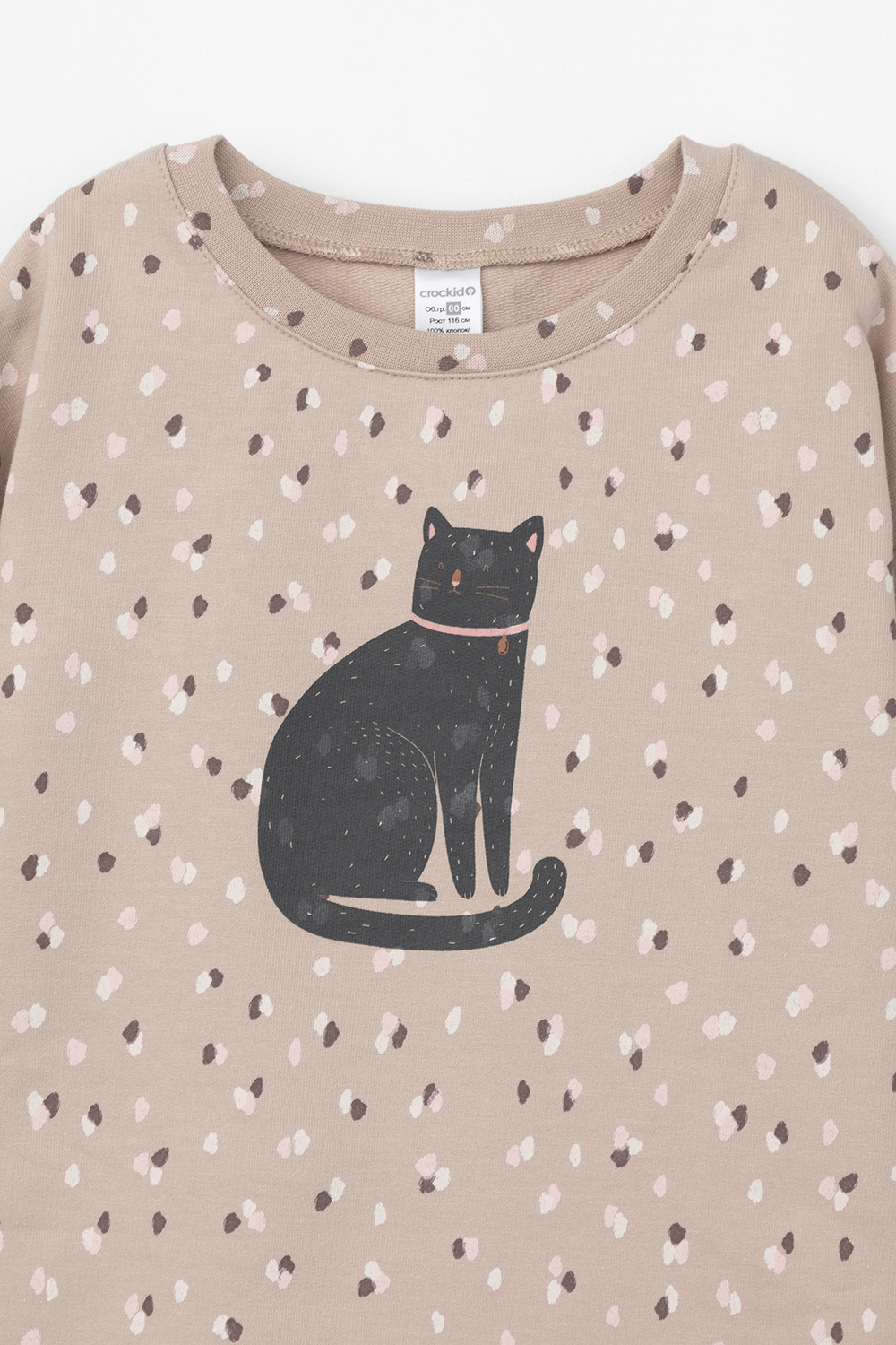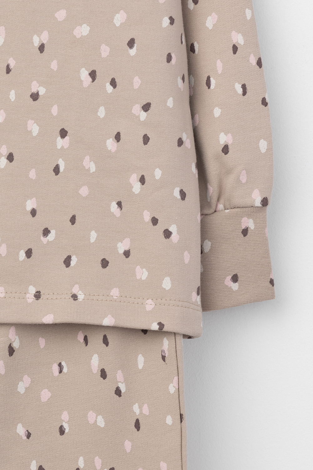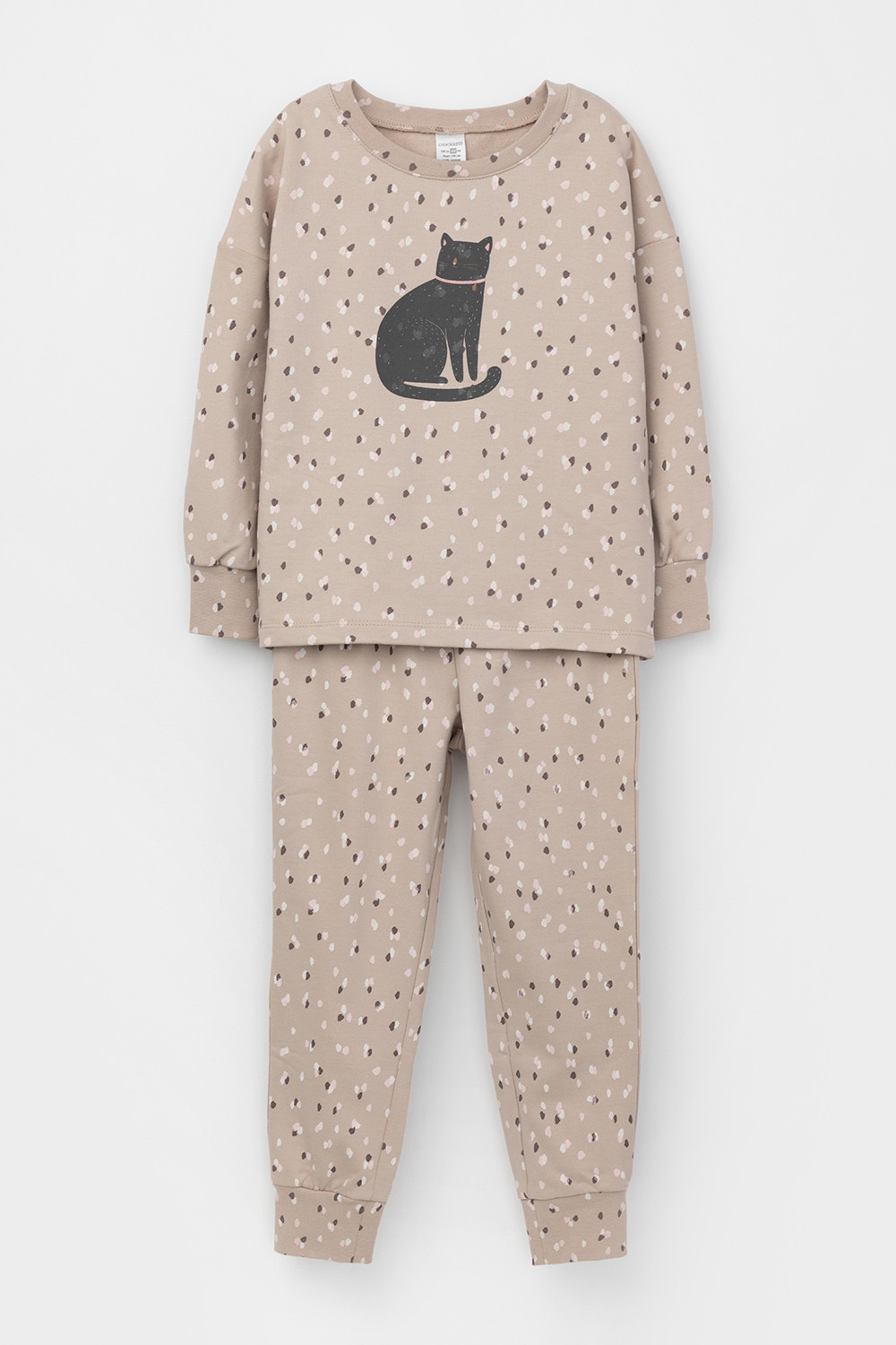 Трикотажный пижамный комплект из футера петли, произведённого из натурального хлопка. У джемпера длинные рукава со спущенными плечами и эластичная мягкая горловина и манжеты. Брюки с удобным поясом на резинке, внизу манжеты. Оригинальная набивка и принт выполнены из стойких, гипоаллергенных текстильных красителей. Все трикотажные полотна производятся в соответствии с нормами Швейцарского сертификата ЭкоТекс.