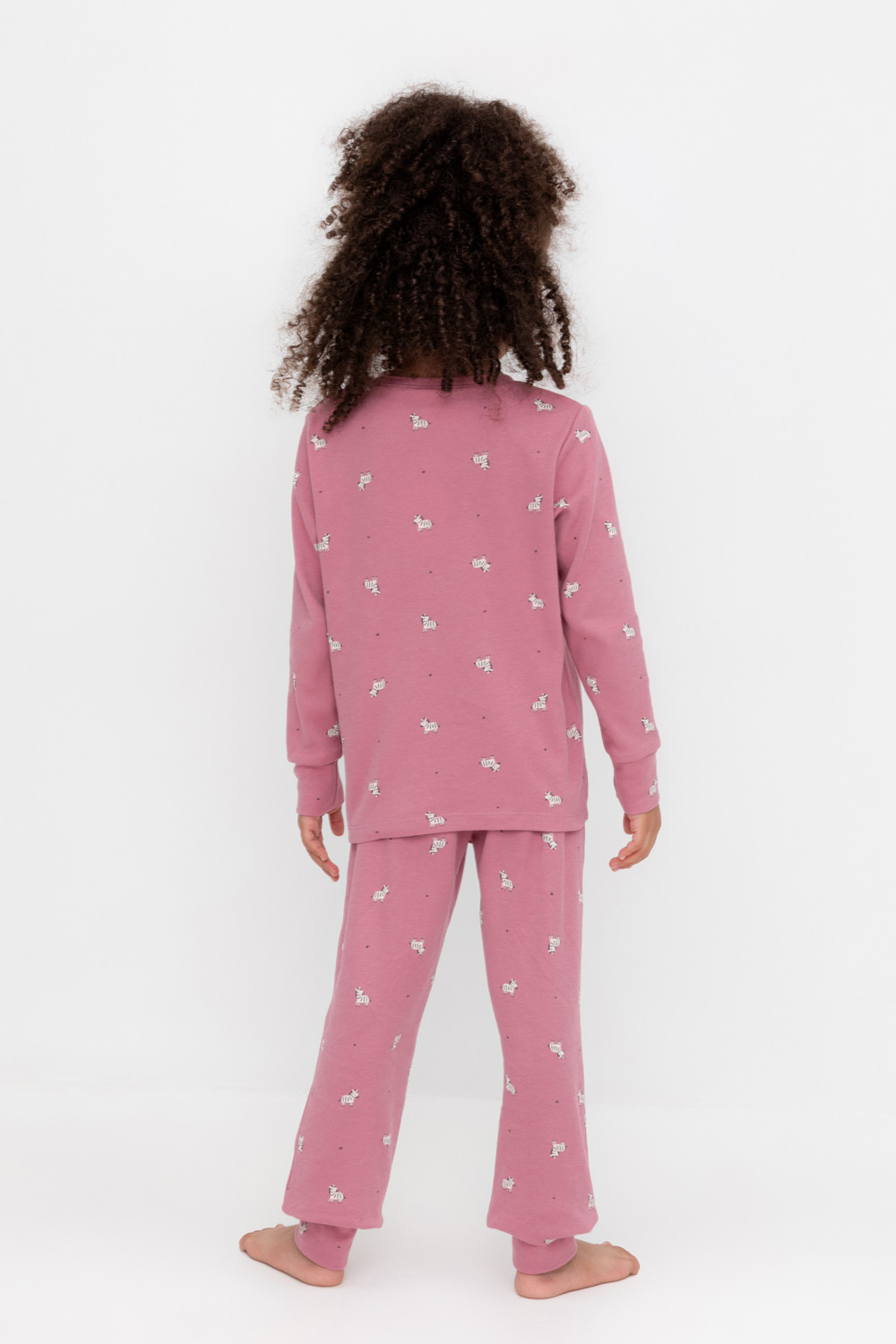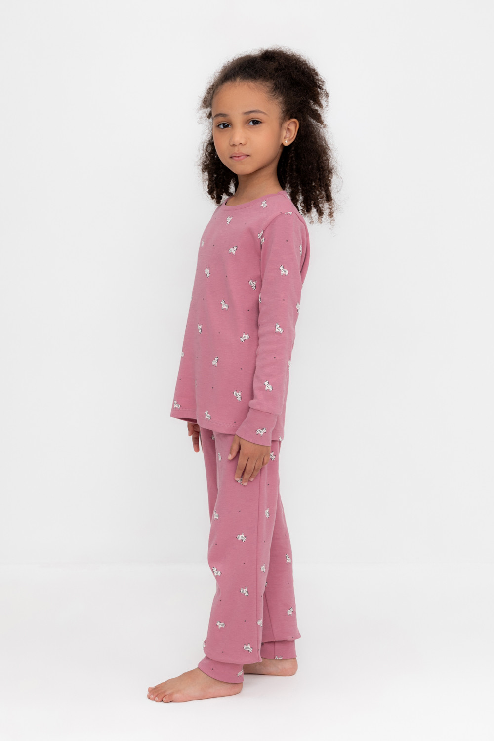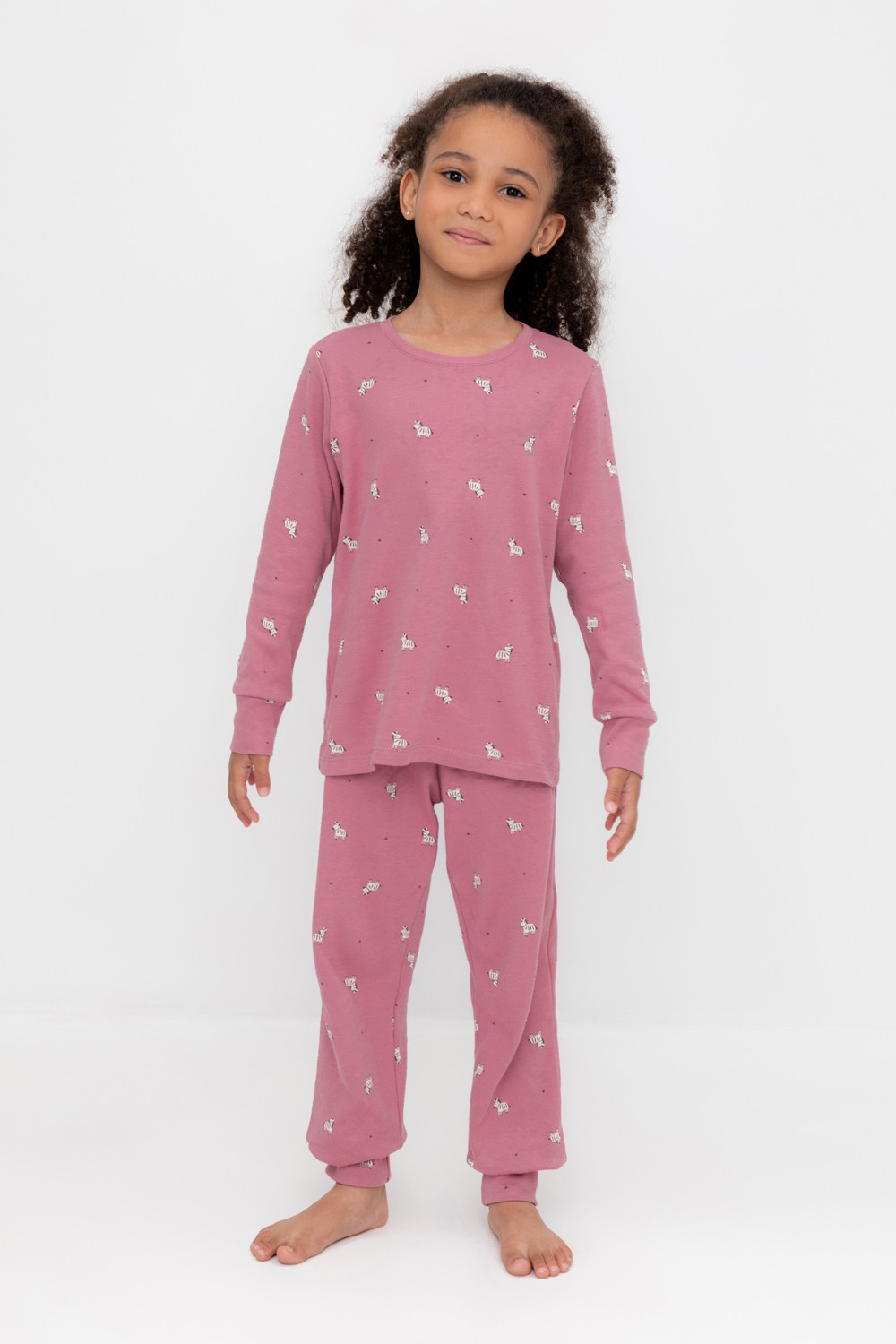 Трикотажная пижама из натурального хлопка. Джемпер с длинными втачными рукавами. У брюк в комплекте мягкий, эластичный пояс на резинке. Оригинальная набивка выполнена из стойких, гипоаллергенных текстильных красителей. Комплект сохраняет цвет и форму после многократных стирок. Все трикотажные полотна производятся в соответсвии с нормами Швейцарского сертификата ЭкоТекс.