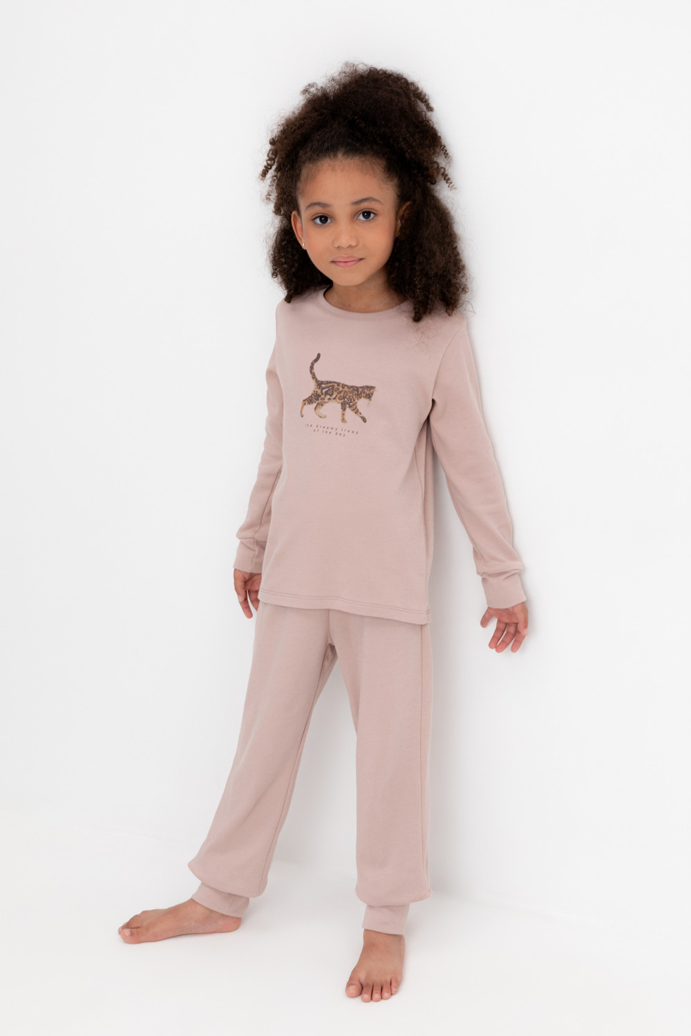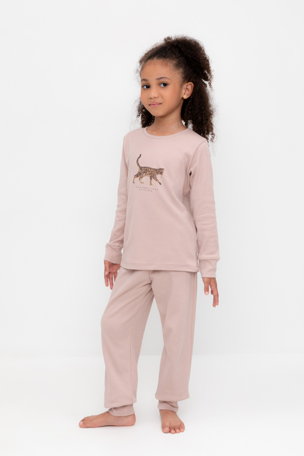 Трикотажная пижама из натурального хлопка. Джемпер с длинными втачными рукавами и брюки с эластичной резинкой в поясе. Мягкие манжеты на рукавах и по низу брюк. Оригинальный принт выполнен из стойких текстильных гипоаллергенных красителей. Изделие сохраняет цвет и форму после многократных стирок. Все трикотажные полотна производятся в соответствии с нормами швейцарского сертификата ЭкоТекс.