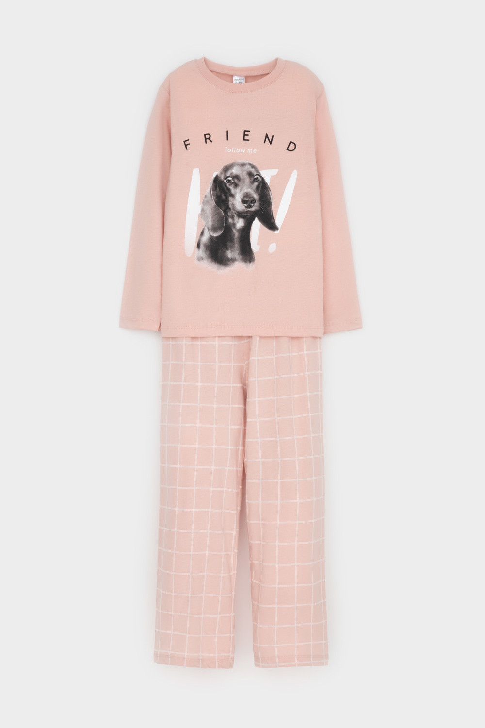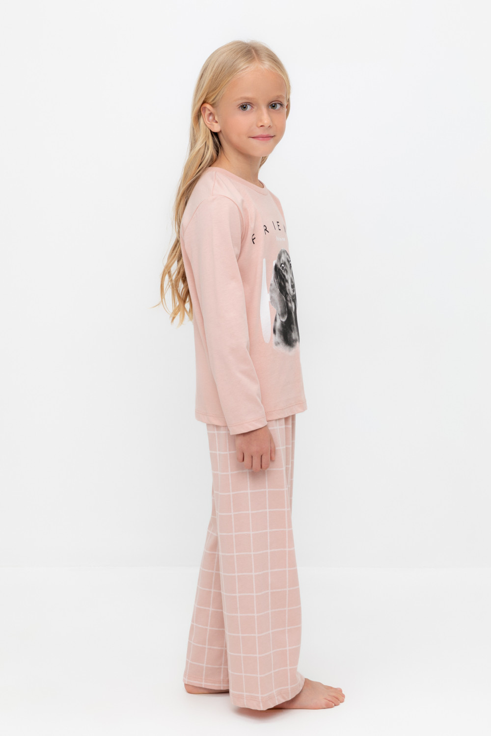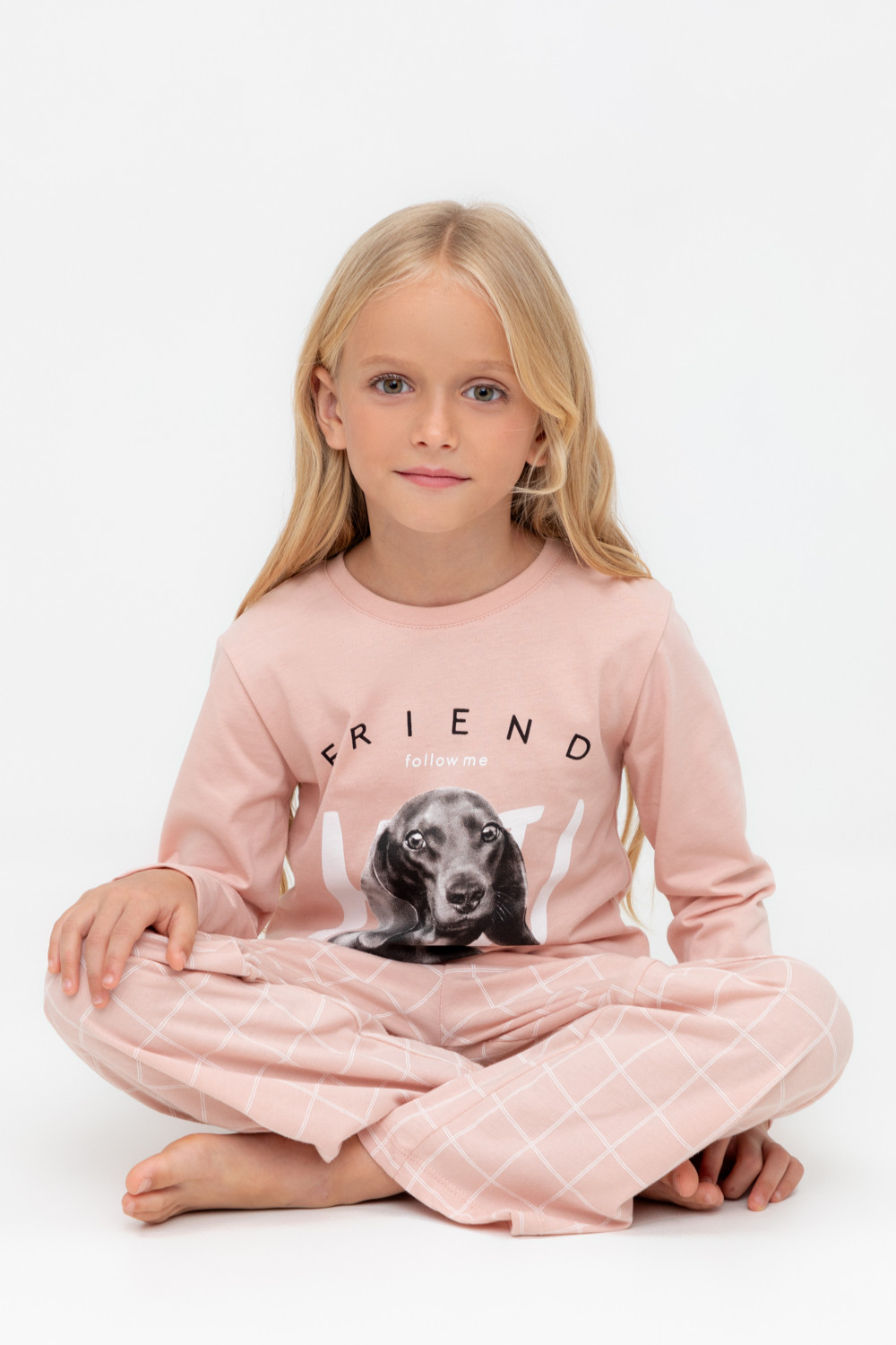 Трикотажная пижама из натурального хлопка. Джемпер с принтом и длинными втачными рукавами. У брюк в комплекте мягкий, эластичный пояс на резинке. Оригинальная набивка выполнена из стойких, гипоаллергенных текстильных красителей. Комплект сохраняет цвет и форму после многократных стирок. Все трикотажные полотна производятся в соответсвии с нормами Швейцарского сертификата ЭкоТекс.