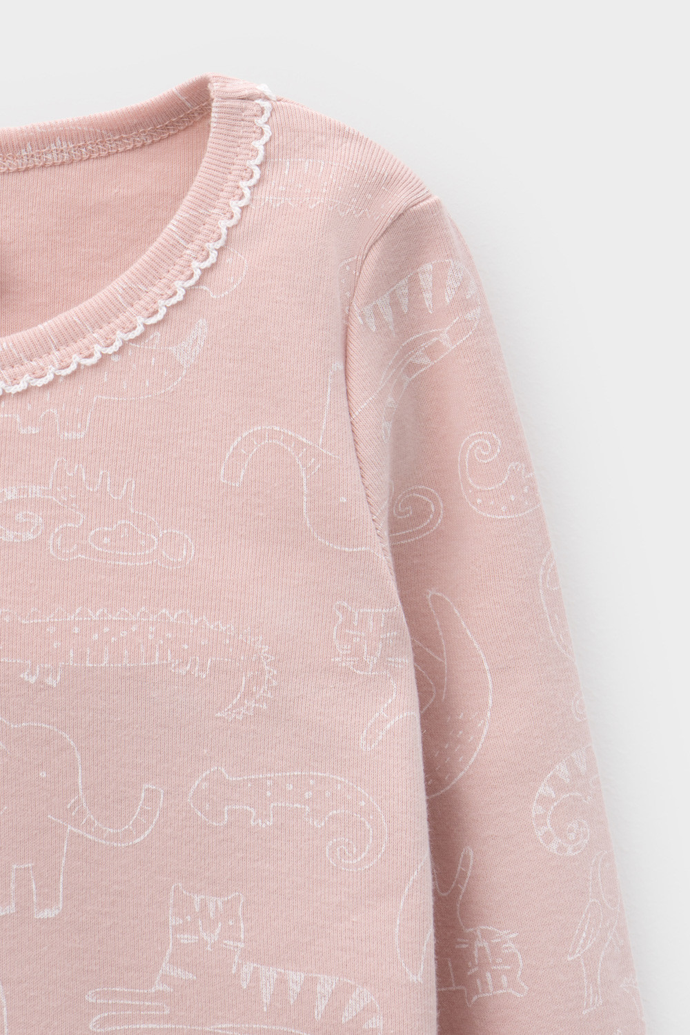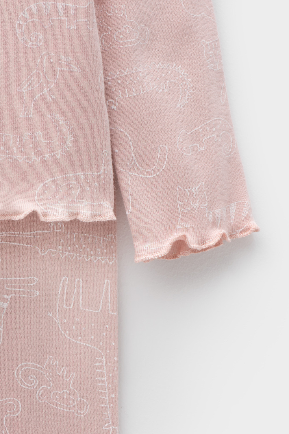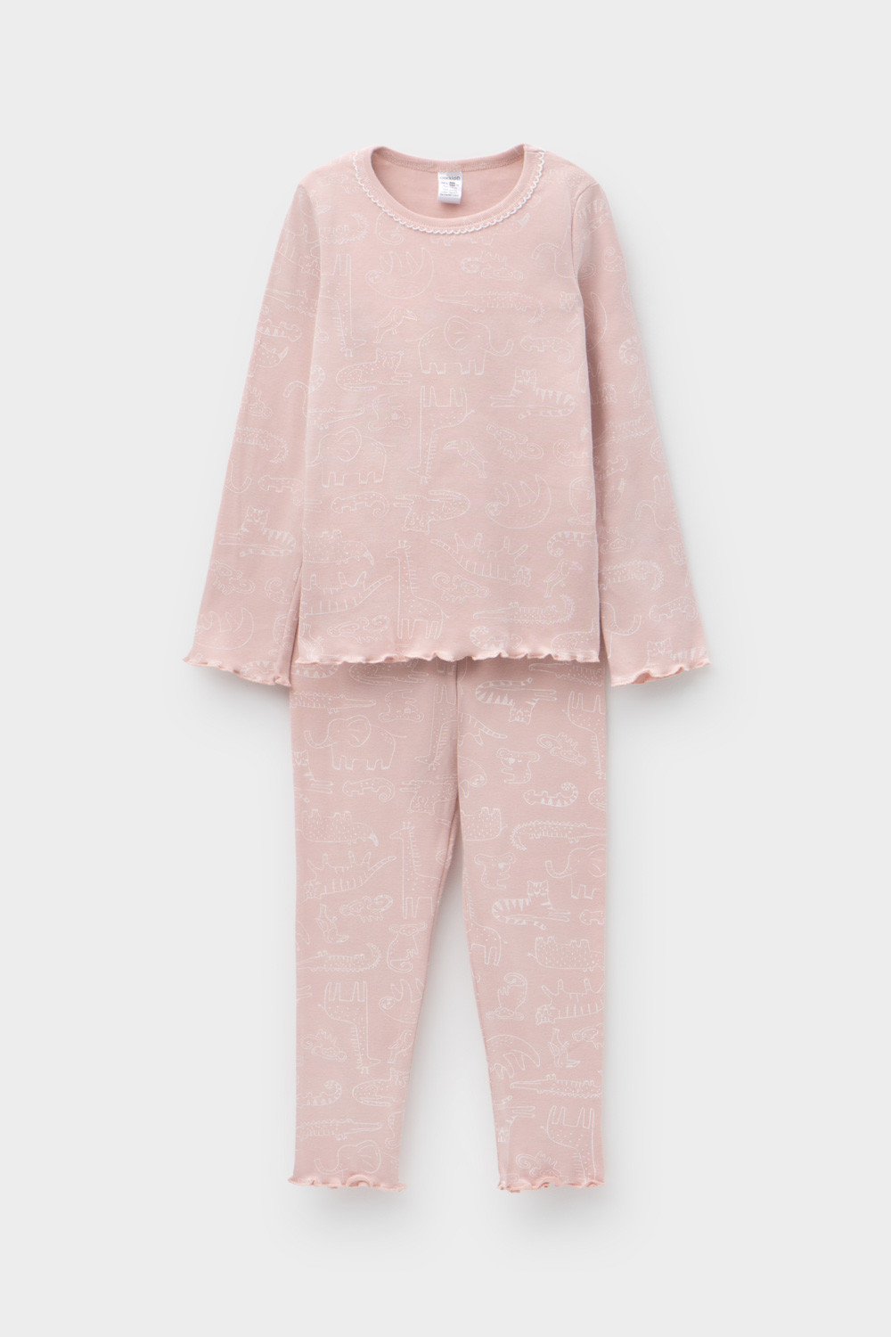 Трикотажная пижама из натурального хлопка. Джемпер с длинными втачными рукавами. У лосин мягкий, эластичный пояс на резинке. Оригинальная набивка выполнена из стойких, гипоаллергенных текстильных красителей. Комплект сохраняет цвет и форму после многократных стирок. Все трикотажные полотна производятся в соответсвии с нормами Швейцарского сертификата ЭкоТекс.
