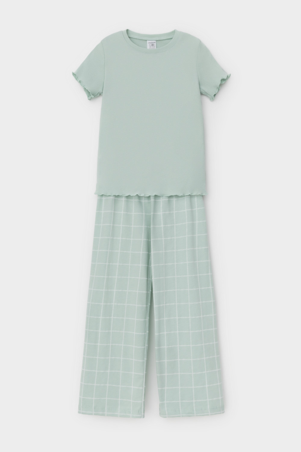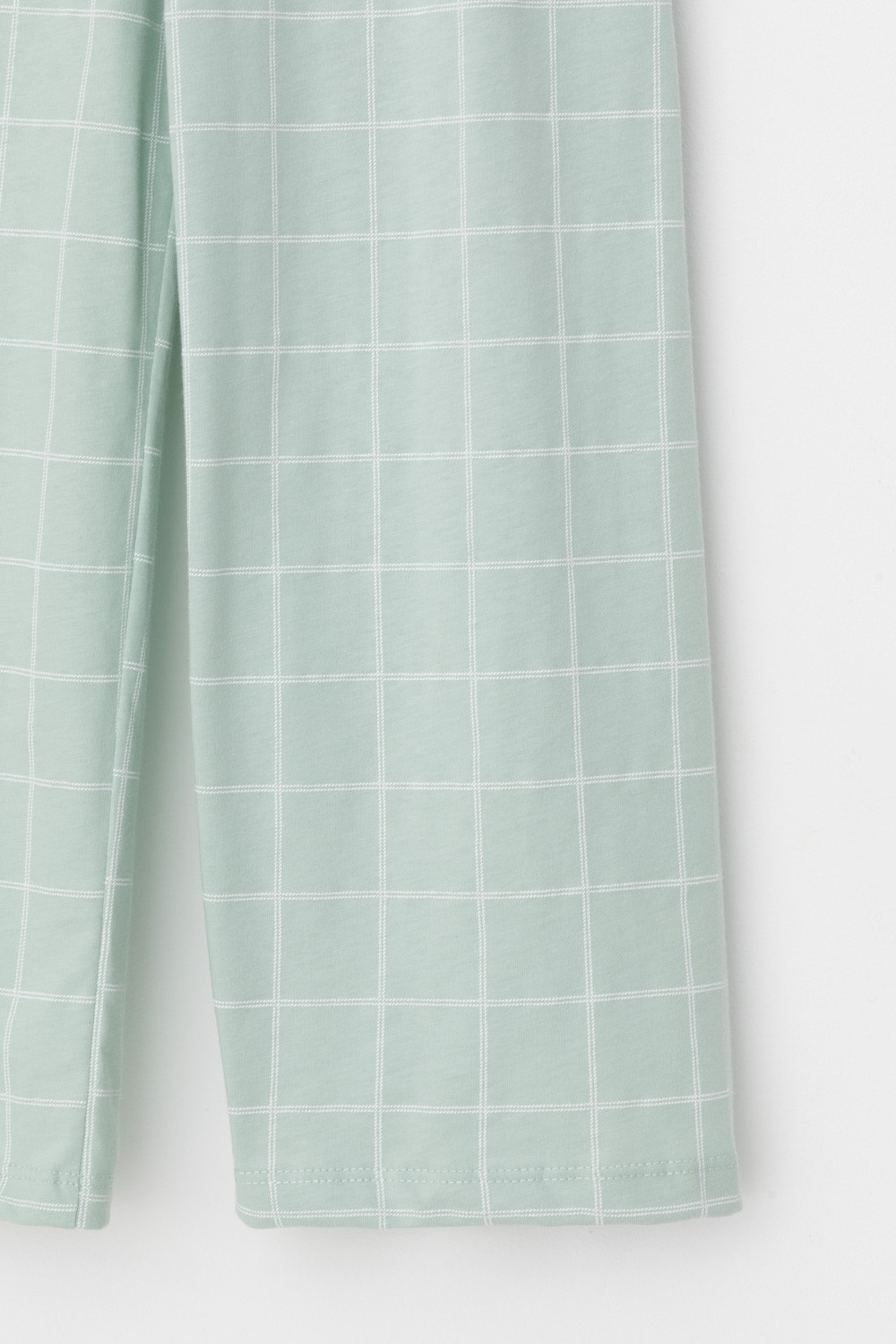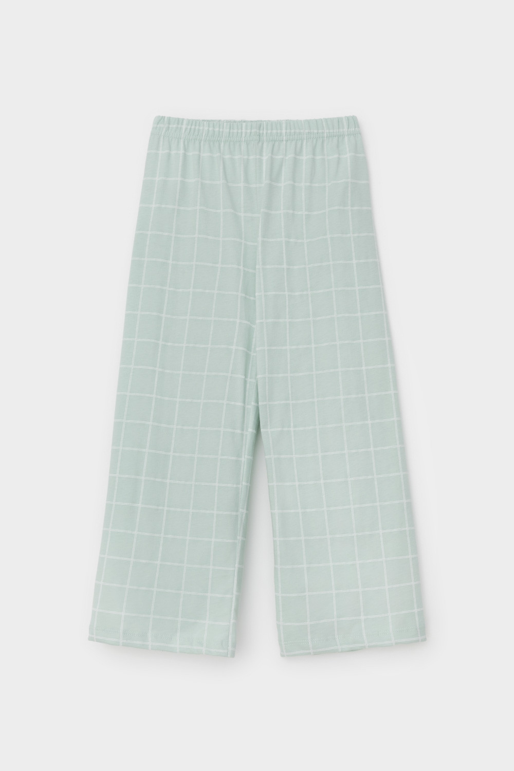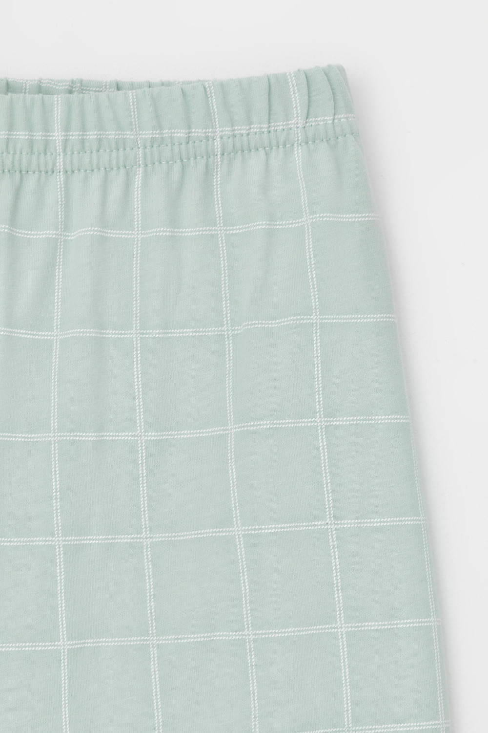 Трикотажная пижама из натурального хлопка. Футболка с короткими втачными рукавами. У футболки рукава и низ изделия обработаны микрооверлоком У брюк в комплекте мягкий, эластичный пояс на резинке. Оригинальная набивка выполнена из стойких, гипоаллергенных текстильных красителей. Комплект сохраняет цвет и форму после многократных стирок. Все трикотажные полотна производятся в соответсвии с нормами Швейцарского сертификата ЭкоТекс.