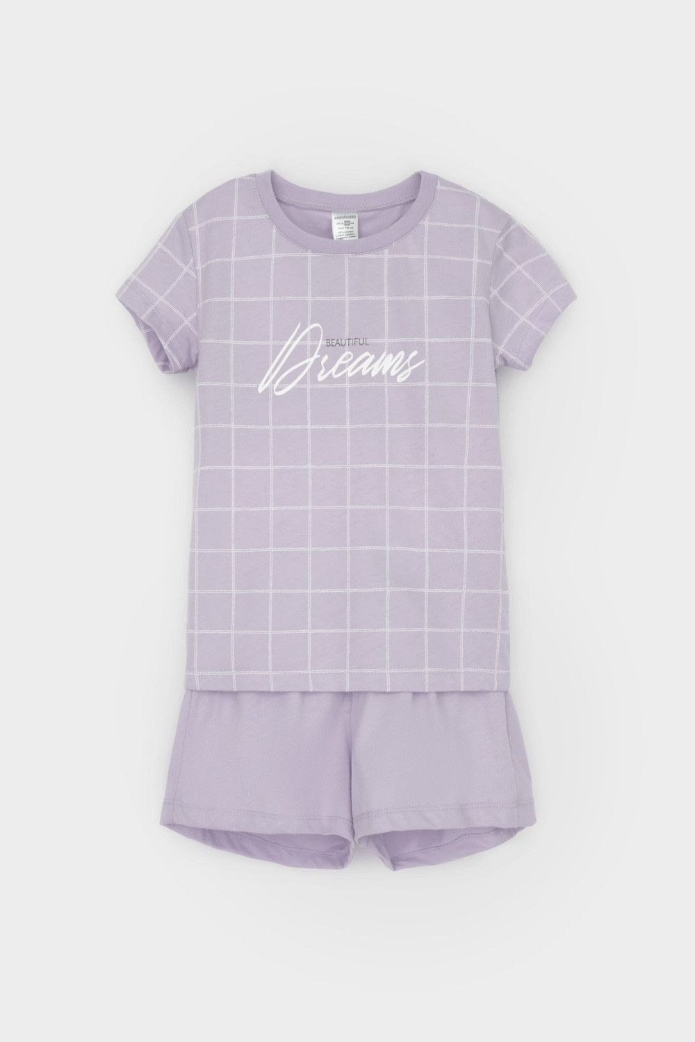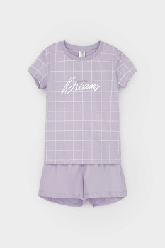 Трикотажная пижама из натурального хлопка. Футболка с принтом и короткими спущенными рукавами. У шорт в комплекте мягкий, эластичный пояс на резинке. Оригинальная набивка выполнена из стойких, гипоаллергенных текстильных красителей. Комплект сохраняет цвет и форму после многократных стирок. Все трикотажные полотна производятся в соответсвии с нормами Швейцарского сертификата ЭкоТекс.