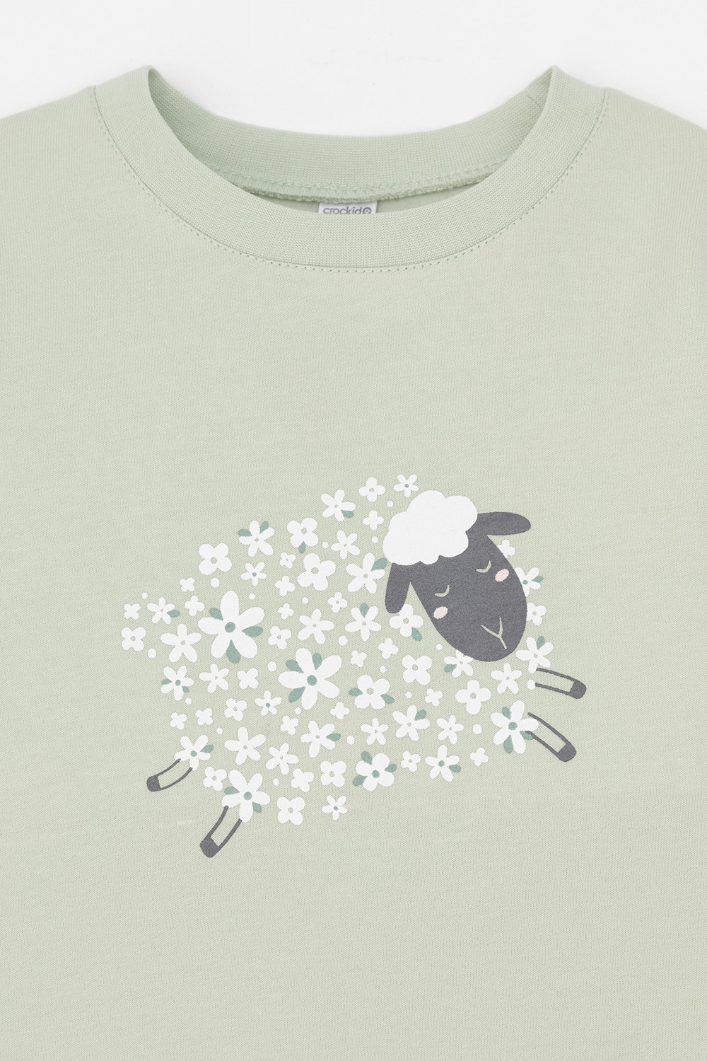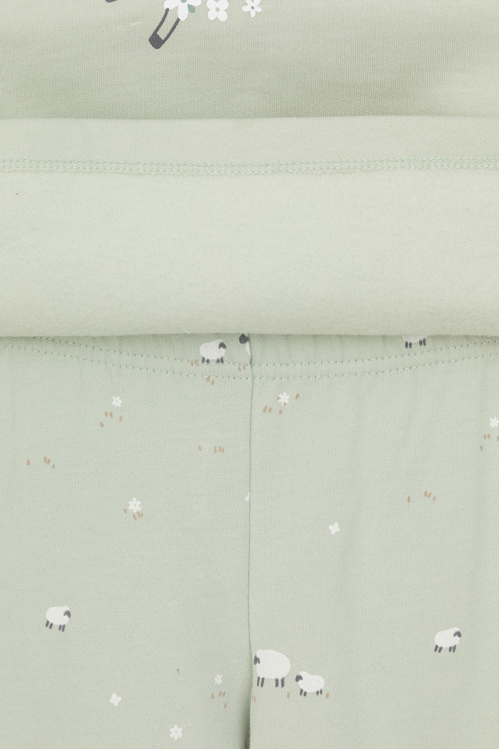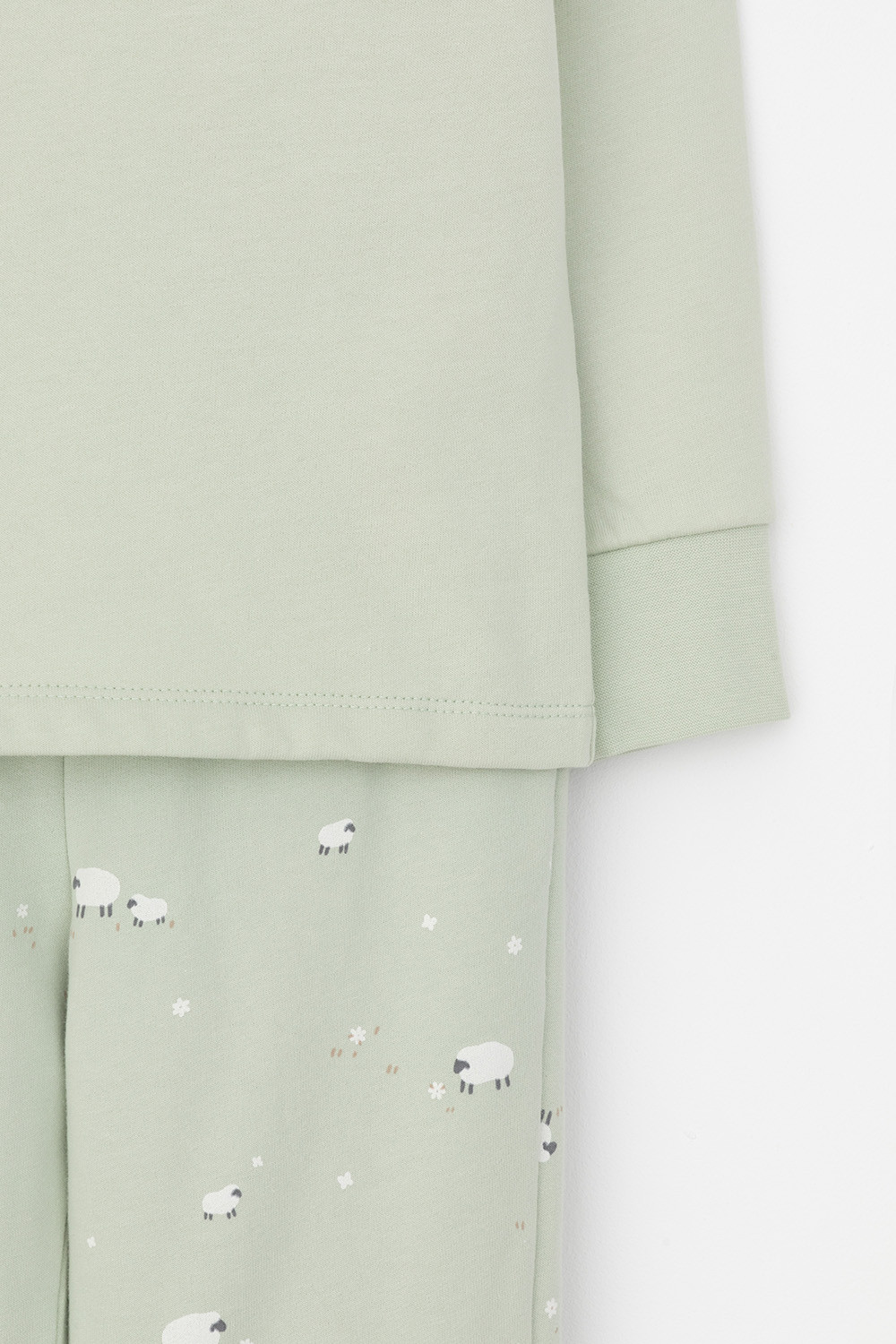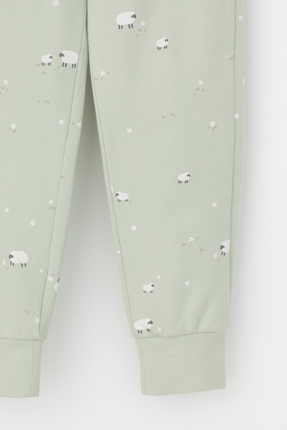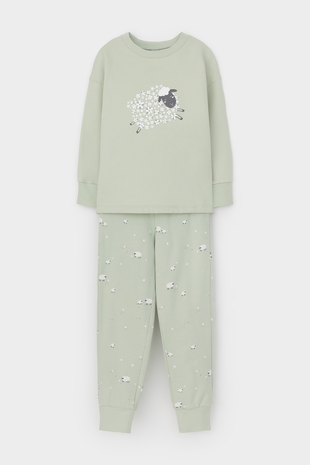 Трикотажная пижама с начёсом из натурального хлопка. Джемпер с длинными спущенными рукавами и брюки с эластичной резинкой в поясе. Мягкие манжеты на рукавах и по низу брюк. Оригинальные набивка и принт выполнены из стойких гипоаллергенных текстильных гипоаллергенных красителей. Изделие сохраняет цвет и форму после многократных стирок. Все трикотажные полотна производятся в соответсвии с нормами швейцарского сертификата ЭкоТекс.