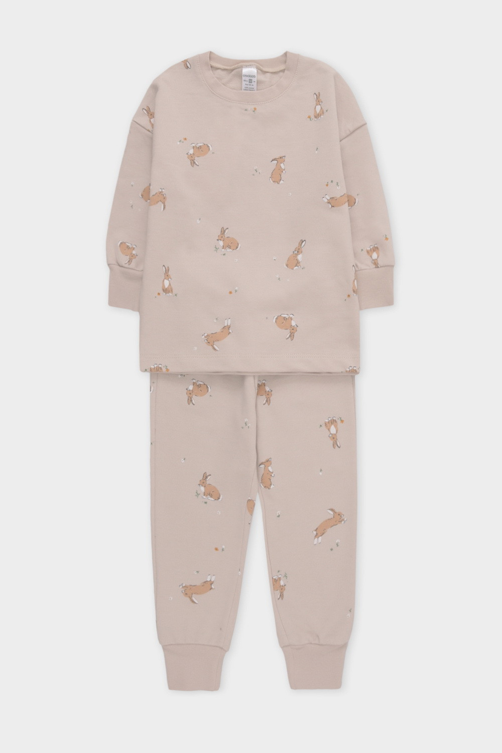 Трикотажный пижамный комплект из петельчатого футера, произведённого из натурального хлопка. У джемпера длинные рукава со спущенными плечами и эластичная мягкая горловина и манжеты. Брюки с удобным поясом на резинке, внизу манжеты. Оригинальная набивка выполнена из стойких, гипоаллергенных текстильных красителей. Все трикотажные полотна производятся в соответствии с нормами Швейцарского сертификата ЭкоТекс.