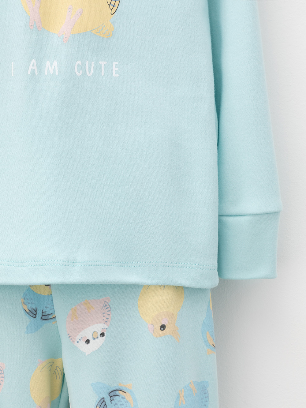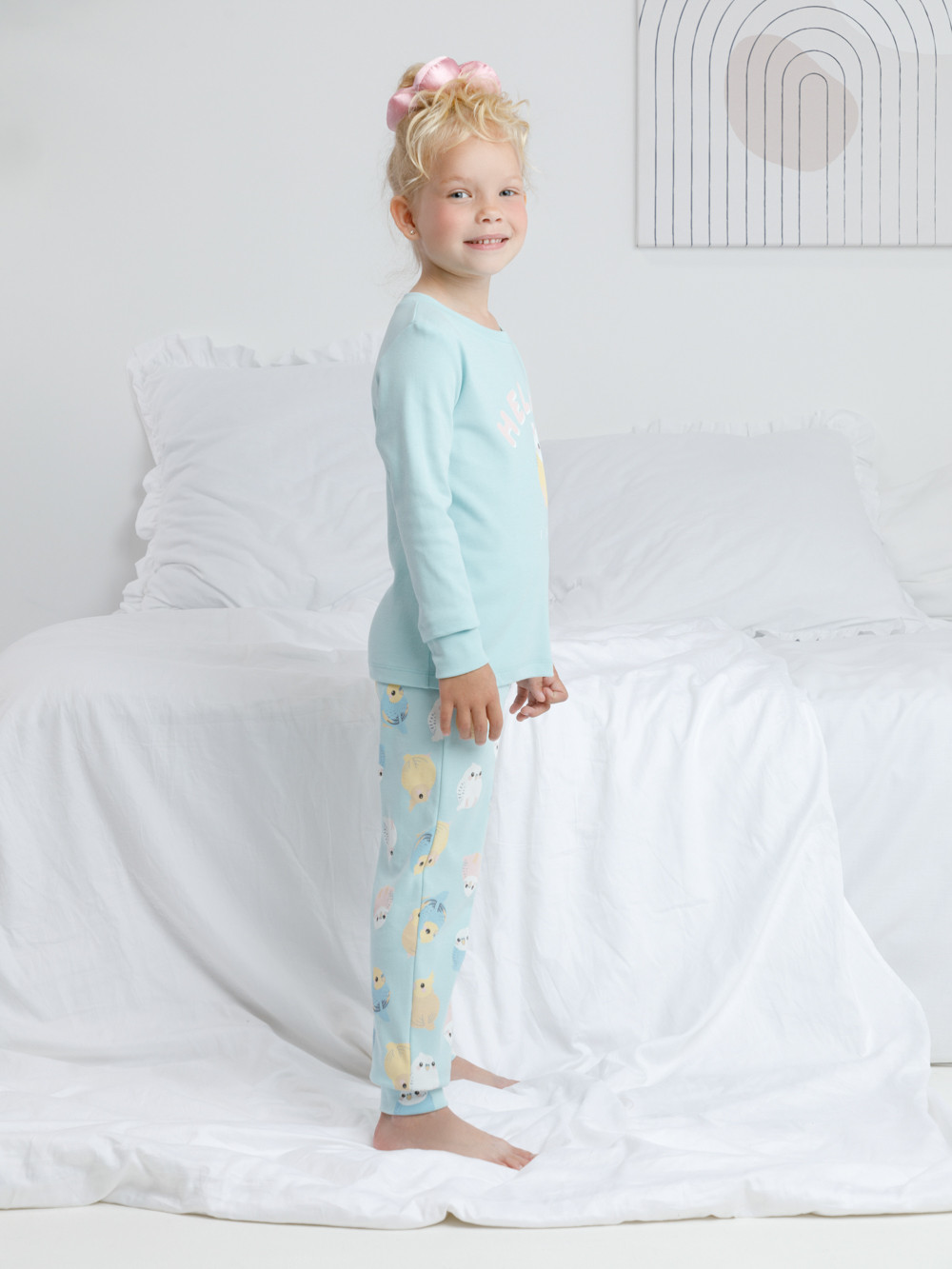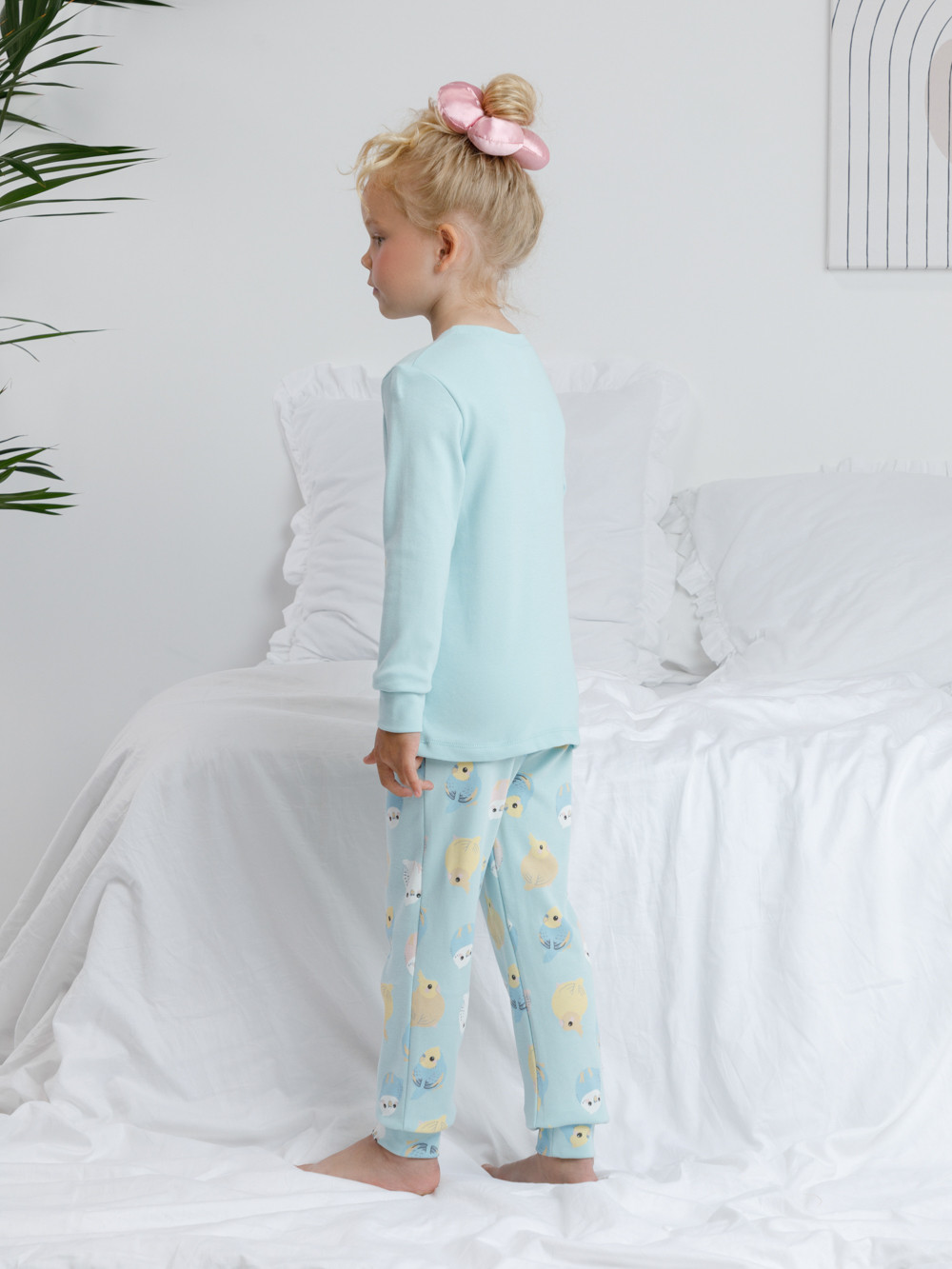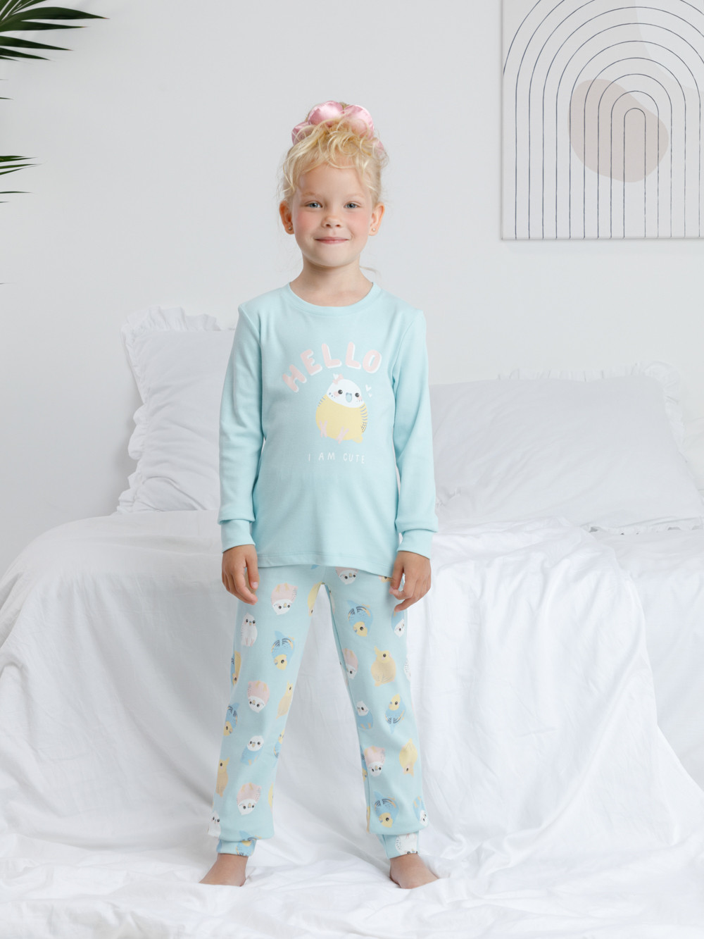Трикотажная пижама из натурального хлопка. Джемпер с длинными втачными рукавами и брюки с эластичной резинкой в поясе. Мягкие манжеты на рукавах и по низу брюк. Оригинальная набивка и принт выполнены из стойких текстильных гипоаллергенных красителей. Изделие сохраняет цвет и форму после многократных стирок. Все трикотажные полотна производятся в соответсвии с нормами швейцарского сертификата ЭкоТекс.
