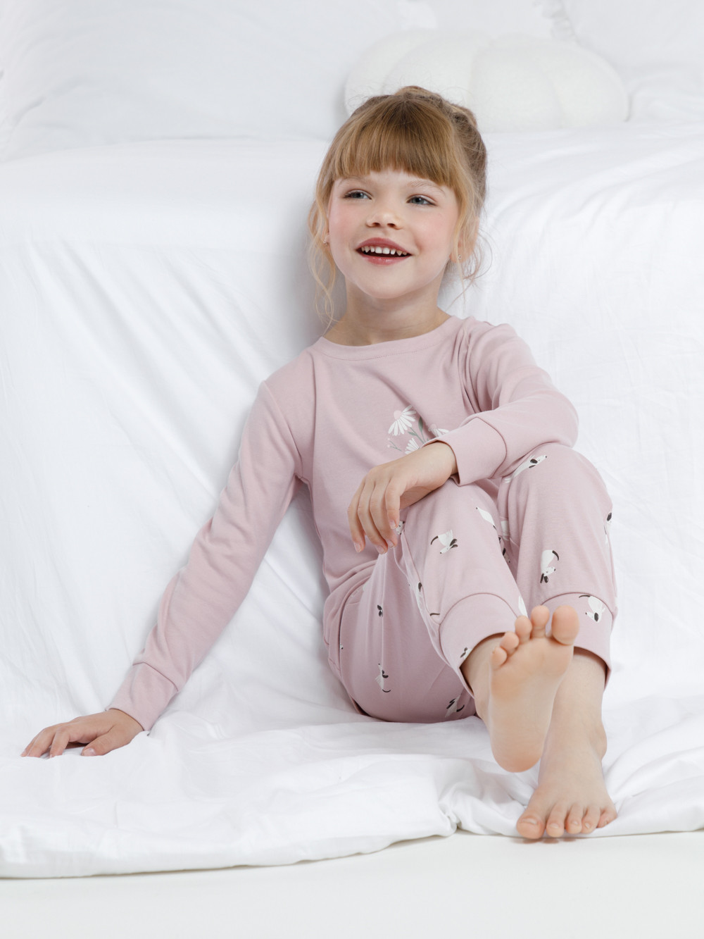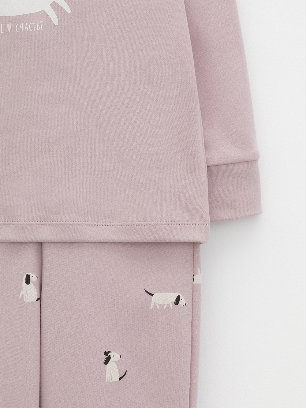 Трикотажная пижама из натурального хлопка. Джемпер с длинными втачными рукавами и брюки с эластичной резинкой в поясе. Мягкие манжеты на рукавах и по низу брюк. Оригинальная набивка и принт выполнены из стойких текстильных гипоаллергенных красителей. Изделие сохраняет цвет и форму после многократных стирок. Все трикотажные полотна производятся в соответствии с нормами швейцарского сертификата ЭкоТекс.