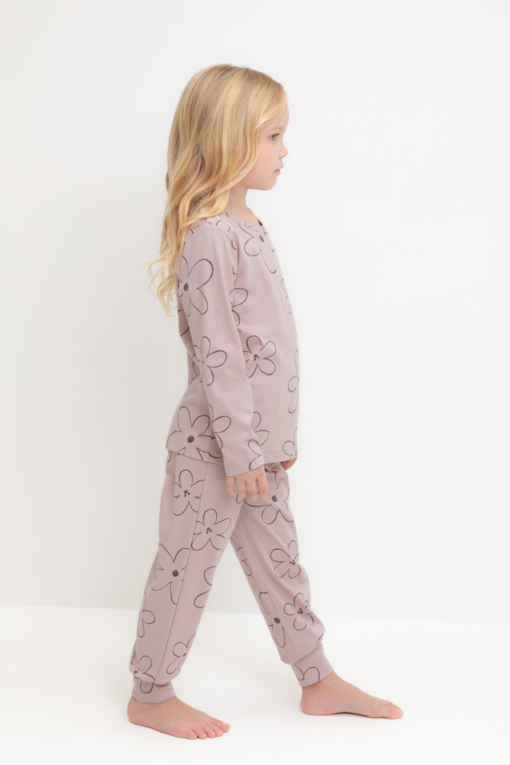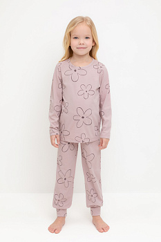Пижама для девочки из натурального хлопка. Джемпер с длинными втачными рукавами и брюки с эластичной резинкой в поясе. Мягкие манжеты по низу брюк сделаны из материала в рубчик. Оригинальная набивка выполнена из стойких текстильных гипоаллергенных красителей. Изделие сохраняет цвет и форму после многократных стирок. Все трикотажные полотна производятся в соответствии с нормами швейцарского сертификата ЭкоТекс.