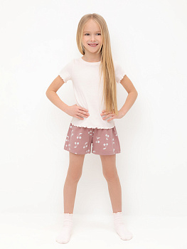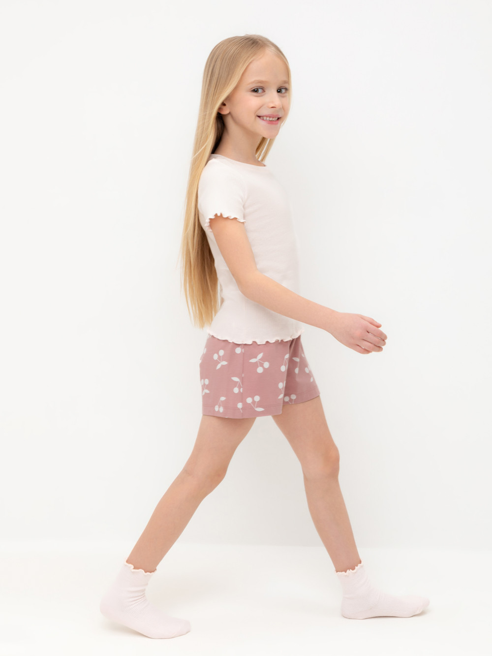 Трикотажная пижама из натурального хлопка. Футболка с короткими втачными рукавами изготовлена из эластичного трикотажа в рубчик. Шорты с эластичной резинкой в поясе выполнены из гладкого трикотажа супрем. Оригинальная набивка выполнена из стойких текстильных гипоаллергенных красителей. Изделие сохраняет цвет и форму после многократных стирок. Все трикотажные полотна производятся в соответсвии с нормами швейцарского сертификата ЭкоТекс.