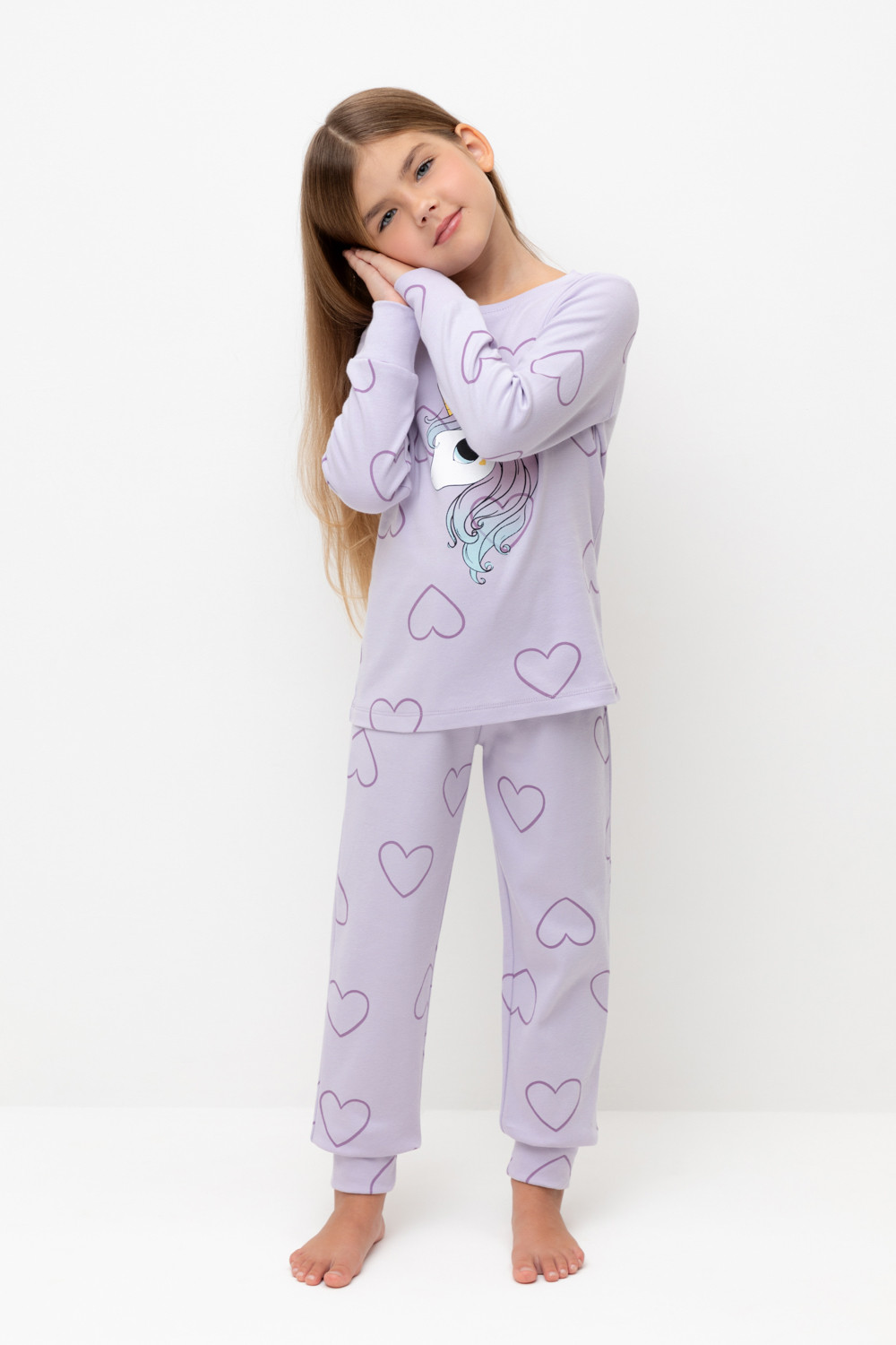 Трикотажная пижама из натурального хлопка. Джемпер с длинными втачными рукавами и брюки с эластичной резинкой в поясе. Мягкие манжеты на рукавах и по низу брюк. Оригинальная набивка и принт выполнены из стойких текстильных гипоаллергенных красителей. Изделие сохраняет цвет и форму после многократных стирок. Все трикотажные полотна производятся в соответсвии с нормами швейцарского сертификата ЭкоТекс.