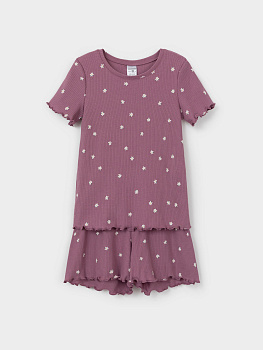 Трикотажная пижама в рубчик из натурального хлопка. Футболка с короткими втачными рукавами и шорты с эластичной резинкой в поясе. Оригинальная набивка выполнена из стойких текстильных гипоаллергенных красителей. Изделие сохраняет цвет и форму после многократных стирок. Все трикотажные полотна производятся в соответствии с нормами швейцарского сертификата ЭкоТекс.