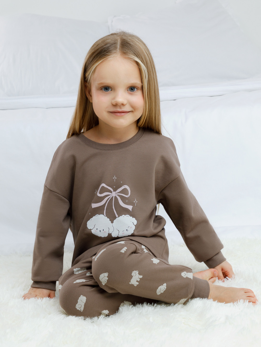 Тёплая пижама с начёсом из натурального хлопка. Джемпер с длинными спущенными рукавами и брюки с эластичной резинкой в поясе. Мягкие манжеты на рукавах и по низу брюк. Оригинальные набивка и принт выполнены из стойких гипоаллергенных текстильных красителей. Изделие сохраняет цвет и форму после многократных стирок. Все трикотажные полотна производятся в соответствии с нормами швейцарского сертификата ЭкоТекс.