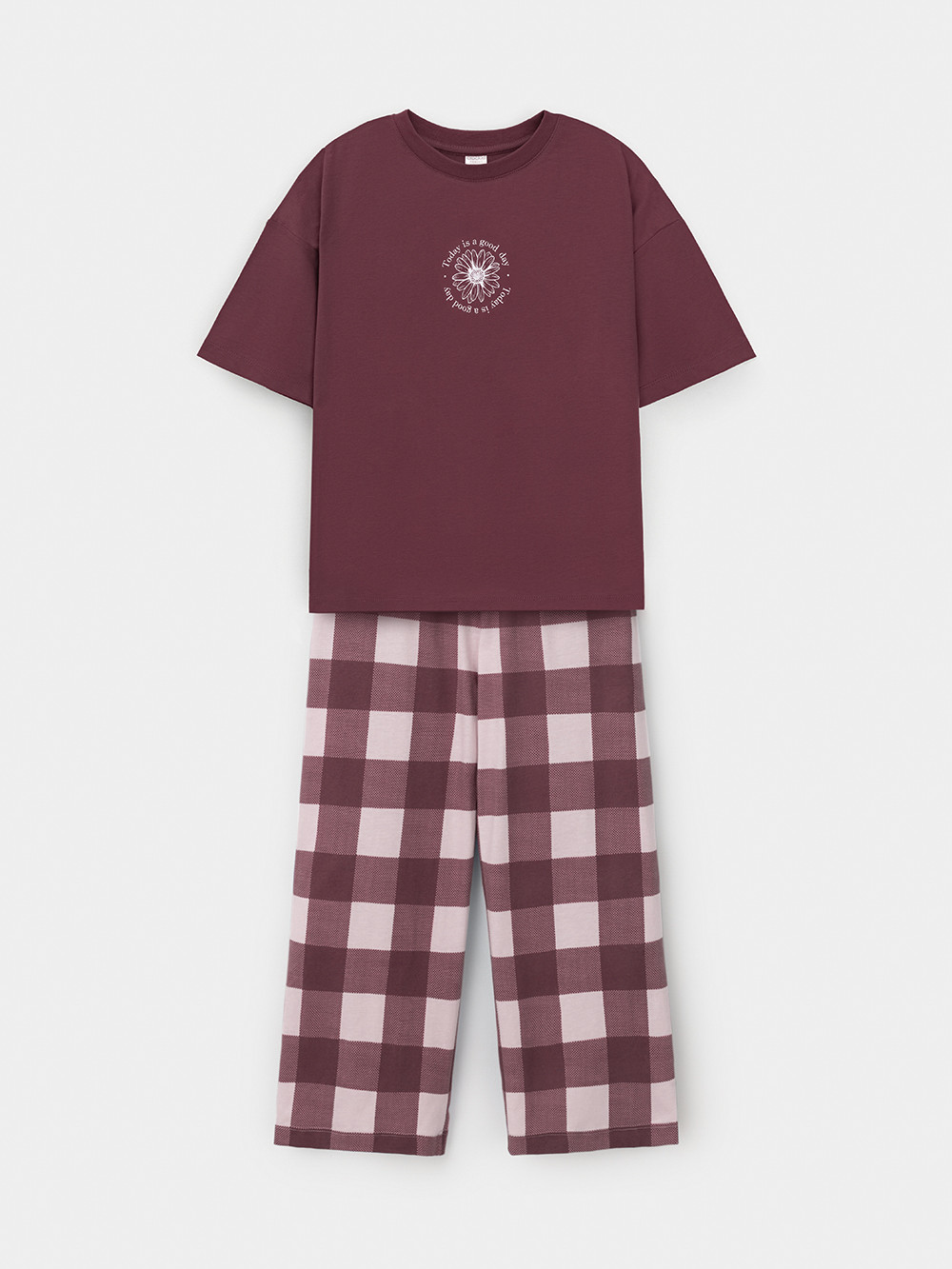 Трикотажная пижама из натурального хлопка для комфортного сна и отдыха. Футболка с короткими спущенными рукавами и прямые брюки с мягкой эластичной резинкой в поясе изготовлены из гладкого трикотажа супрем. Оригинальная набивка и принт выполнены из стойких текстильных гипоаллергенных красителей. Изделие сохраняет цвет и форму после многократных стирок. Все трикотажные полотна производятся в соответствии с нормами швейцарского сертификата ЭкоТекс.