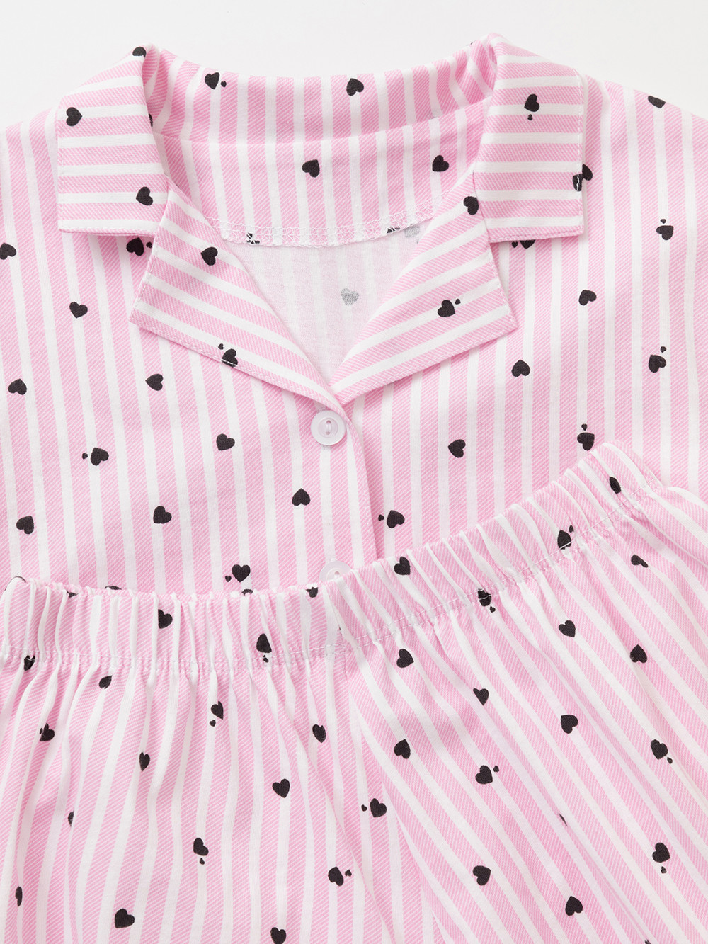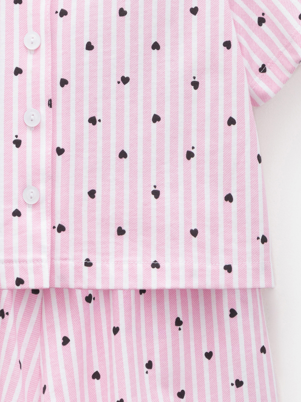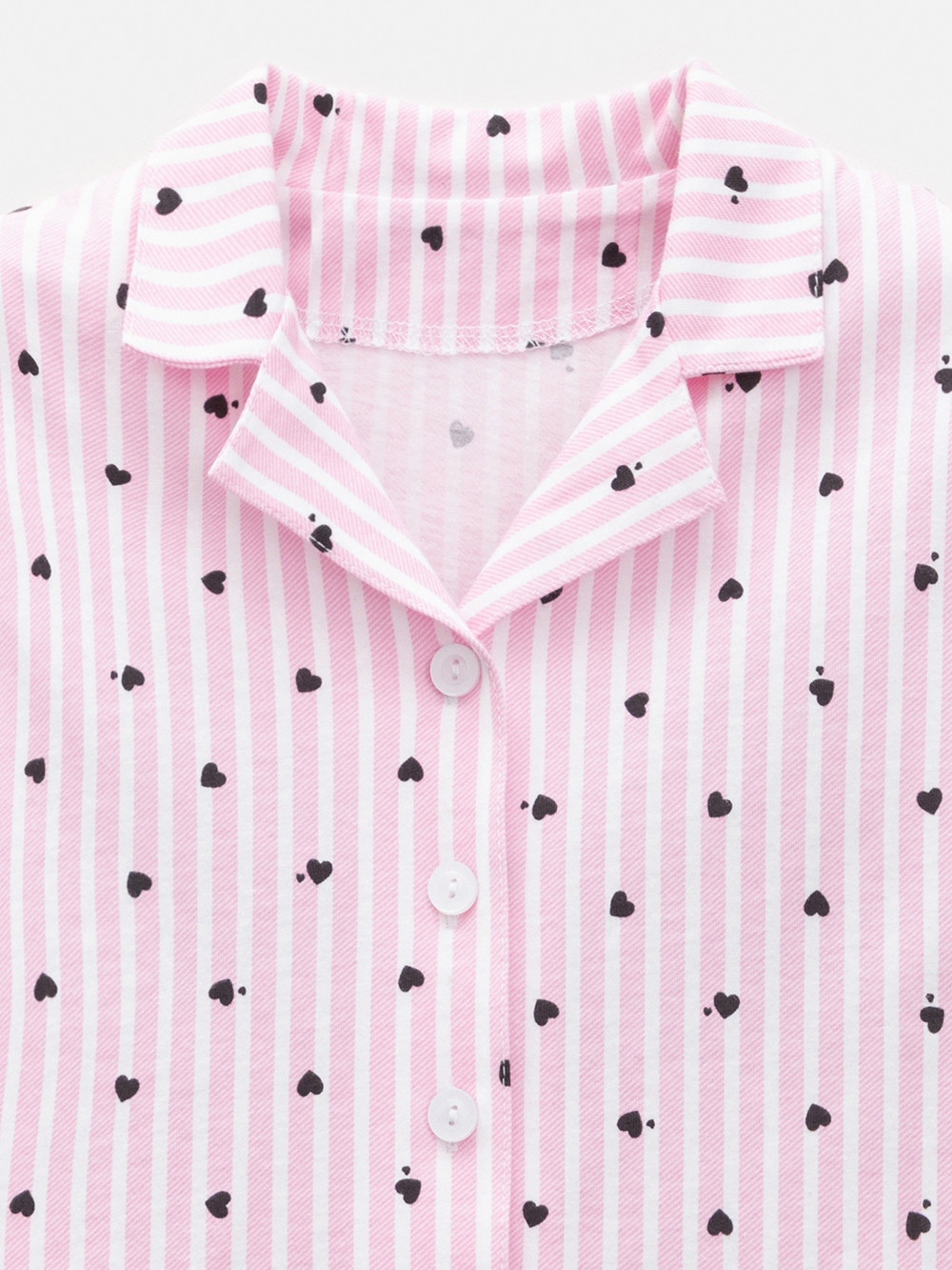 Трикотажная пижама из натурального хлопка для комфортного сна и отдыха. Рубашка на пуговицах с короткими рукавами и свободные шорты с мягкой эластичной резинкой в поясе. Набивной рисунок выполнен из стойких текстильных гипоаллергенных красителей. Изделие сохраняет цвет и форму после многократных стирок. Все трикотажные полотна производятся в соответствии с нормами швейцарского сертификата ЭкоТекс.