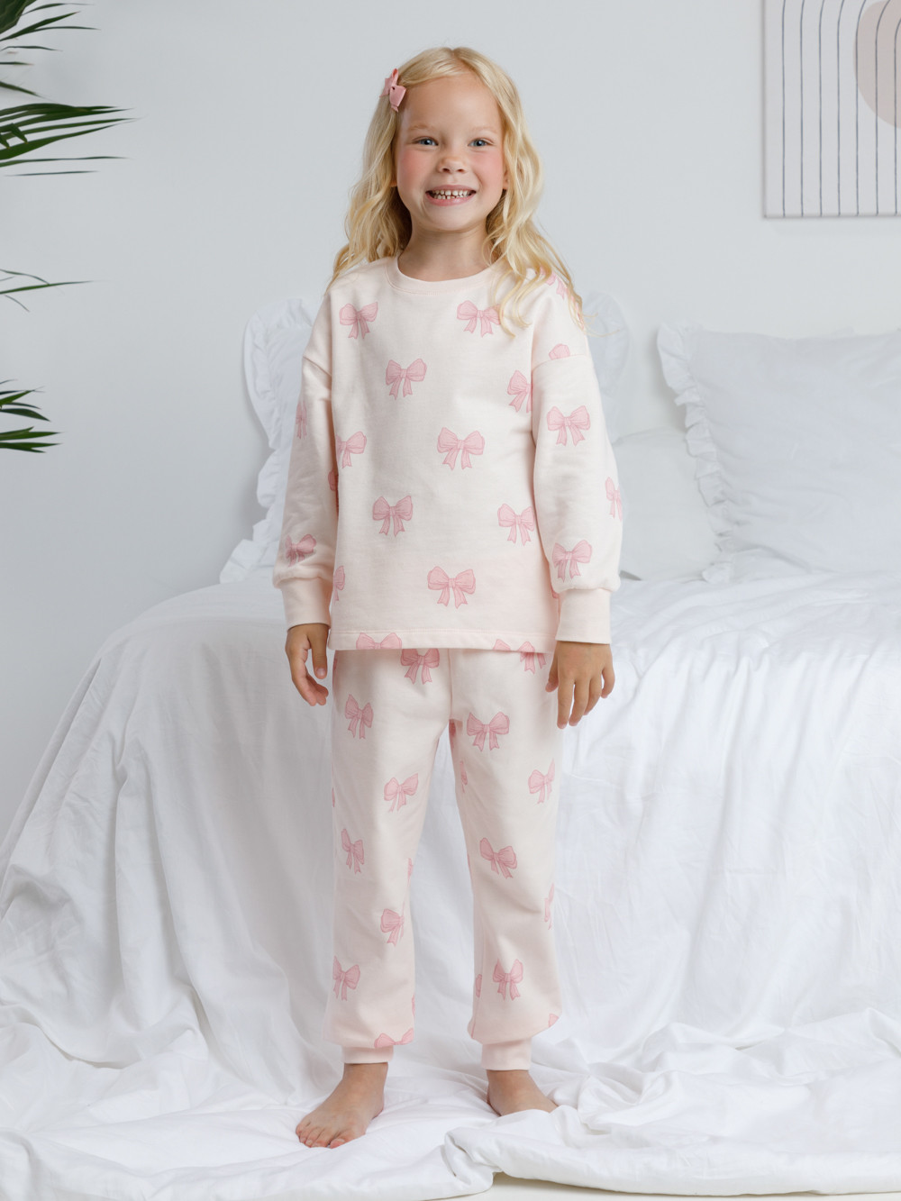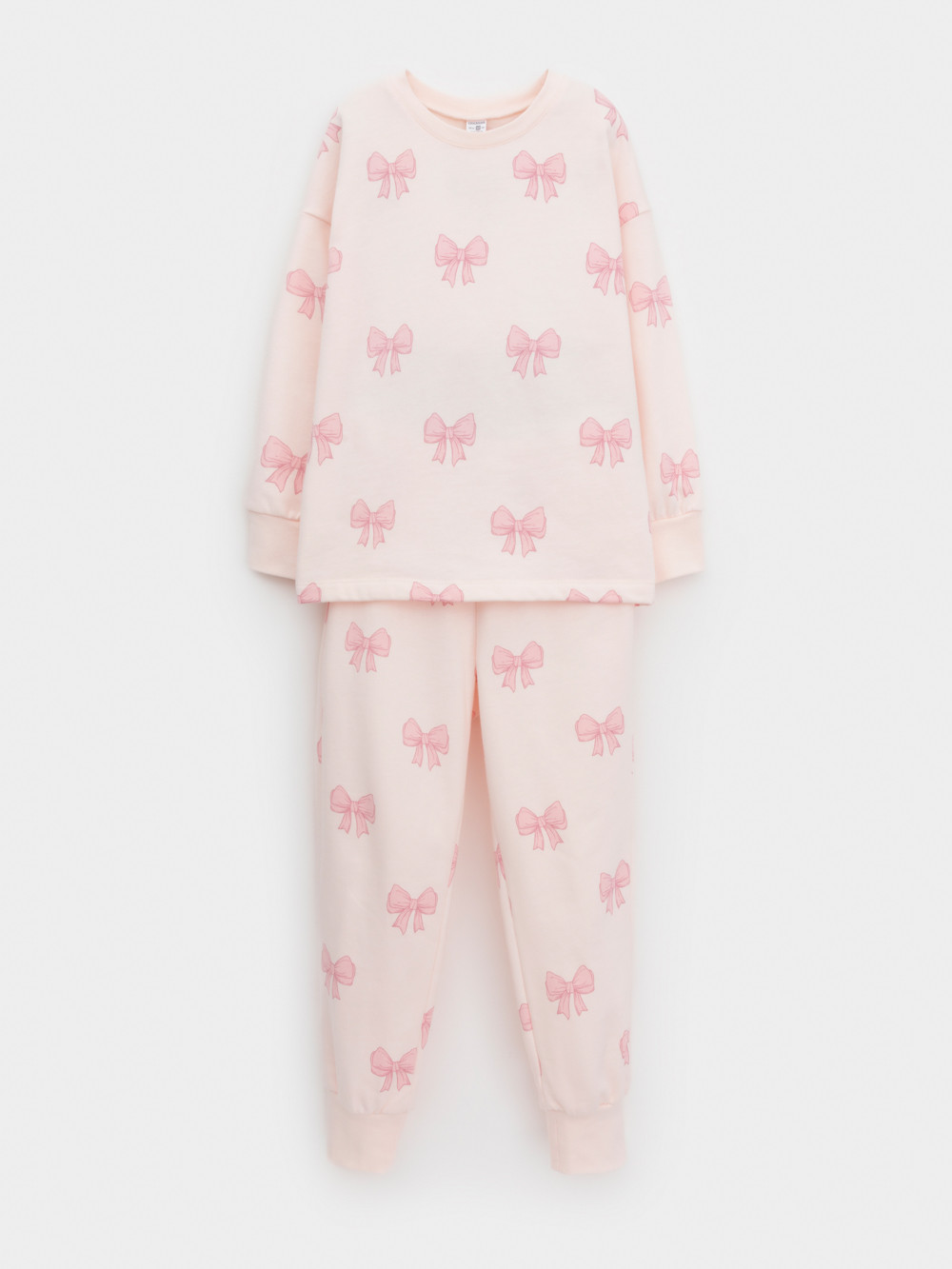 Тёплая пижама с начёсом из натурального хлопка. Джемпер с длинными спущенными рукавами и брюки с эластичной резинкой в поясе. Мягкие манжеты на рукавах и по низу брюк. Оригинальная набивка выполнена из стойких гипоаллергенных текстильных красителей. Изделие сохраняет цвет и форму после многократных стирок. Все трикотажные полотна производятся в соответствии с нормами швейцарского сертификата ЭкоТекс.