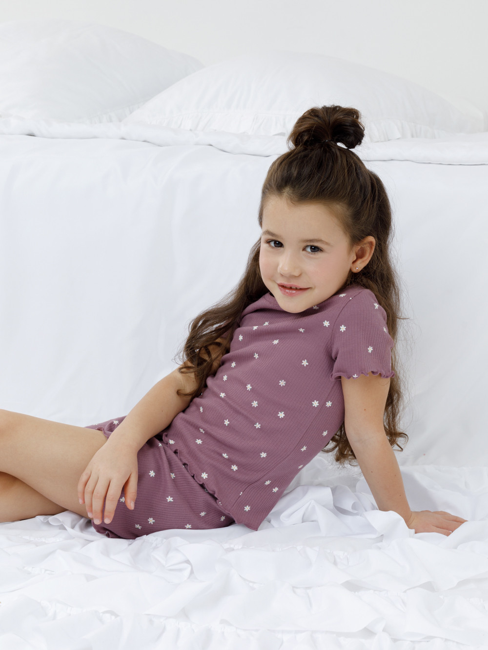 Трикотажная пижама в рубчик из натурального хлопка. Футболка с короткими втачными рукавами и шорты с эластичной резинкой в поясе. Оригинальная набивка выполнена из стойких текстильных гипоаллергенных красителей. Изделие сохраняет цвет и форму после многократных стирок. Все трикотажные полотна производятся в соответствии с нормами швейцарского сертификата ЭкоТекс.