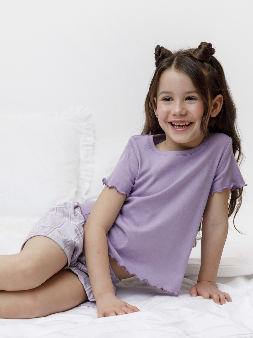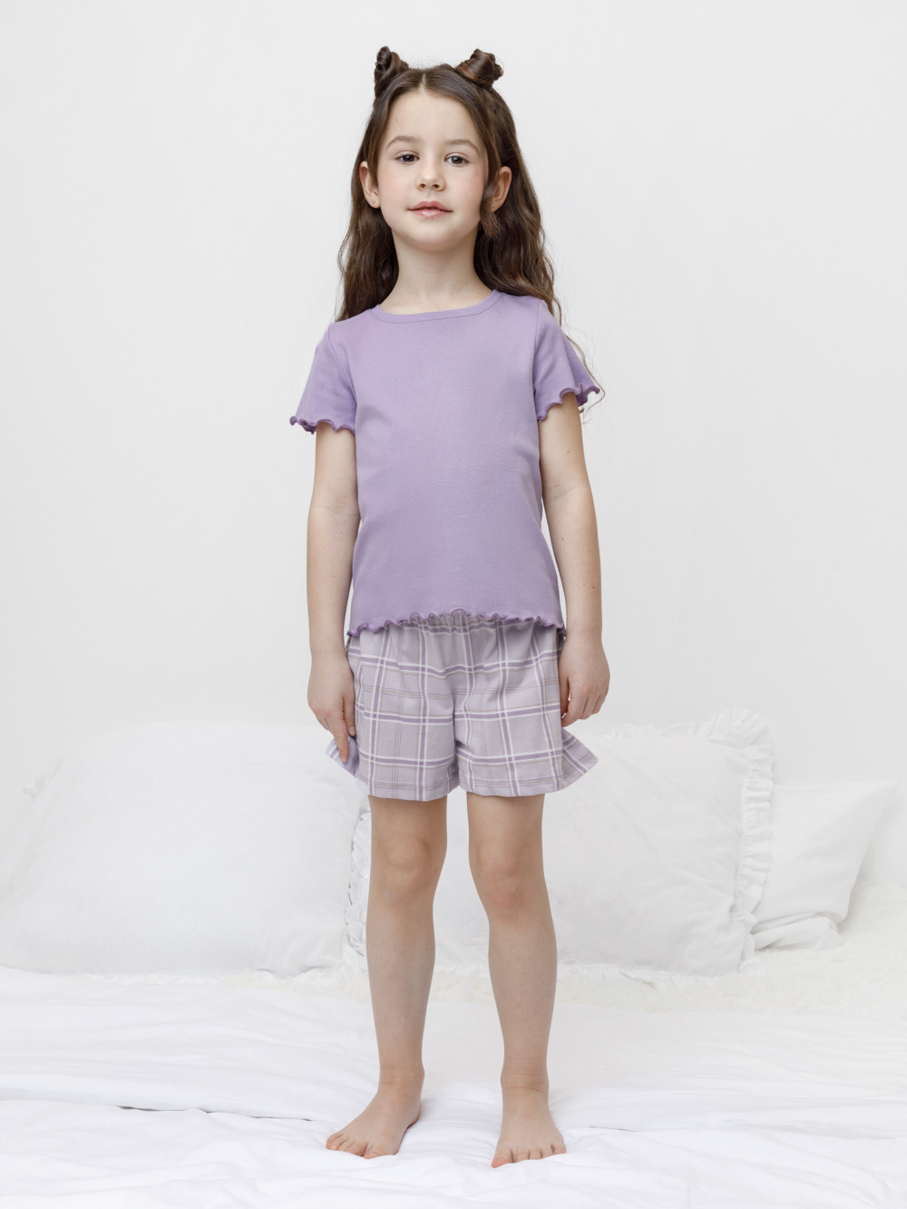 Трикотажная пижама из натурального хлопка. Футболка с короткими втачными рукавами изготовлена из эластичного трикотажа в рубчик. Шорты с эластичной резинкой в поясе выполнены из гладкого трикотажа супрем. Оригинальная набивка выполнена из стойких текстильных гипоаллергенных красителей. Изделие сохраняет цвет и форму после многократных стирок. Все трикотажные полотна производятся в соответствии с нормами швейцарского сертификата ЭкоТекс.