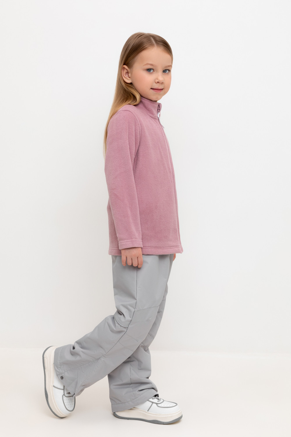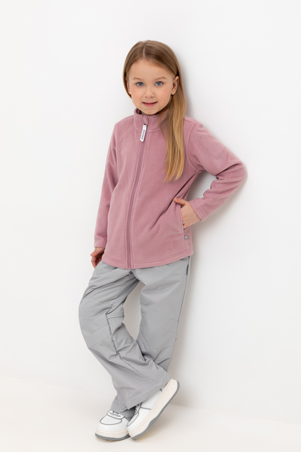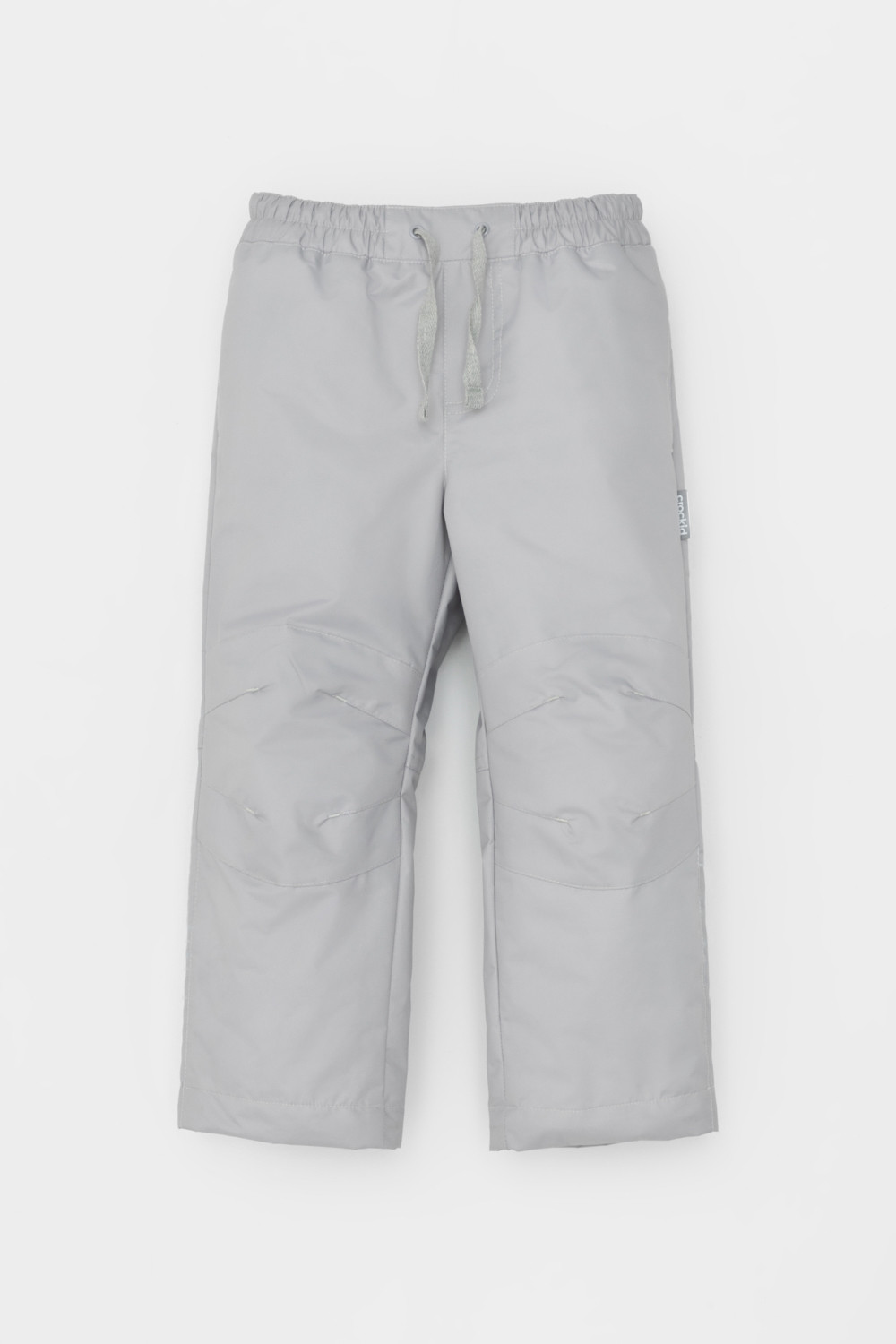 Ветровочные брюки из мембранной, фактурной ткани с дополнительной тефлоновой обработкой. Данный вид обработки предохраняет изделие от загрязнения и лучше отводит влагу. Подклад из 100%  полиэстера - флиса. Область коленей дополнительно усилена деталями из основной ткани. В поясе предусмотрен шнурок для регулировки ширины изделия. Во всех изделиях верхнего ассортимента для безопасности ребенка предусмотрены светоотражающие элементы.
