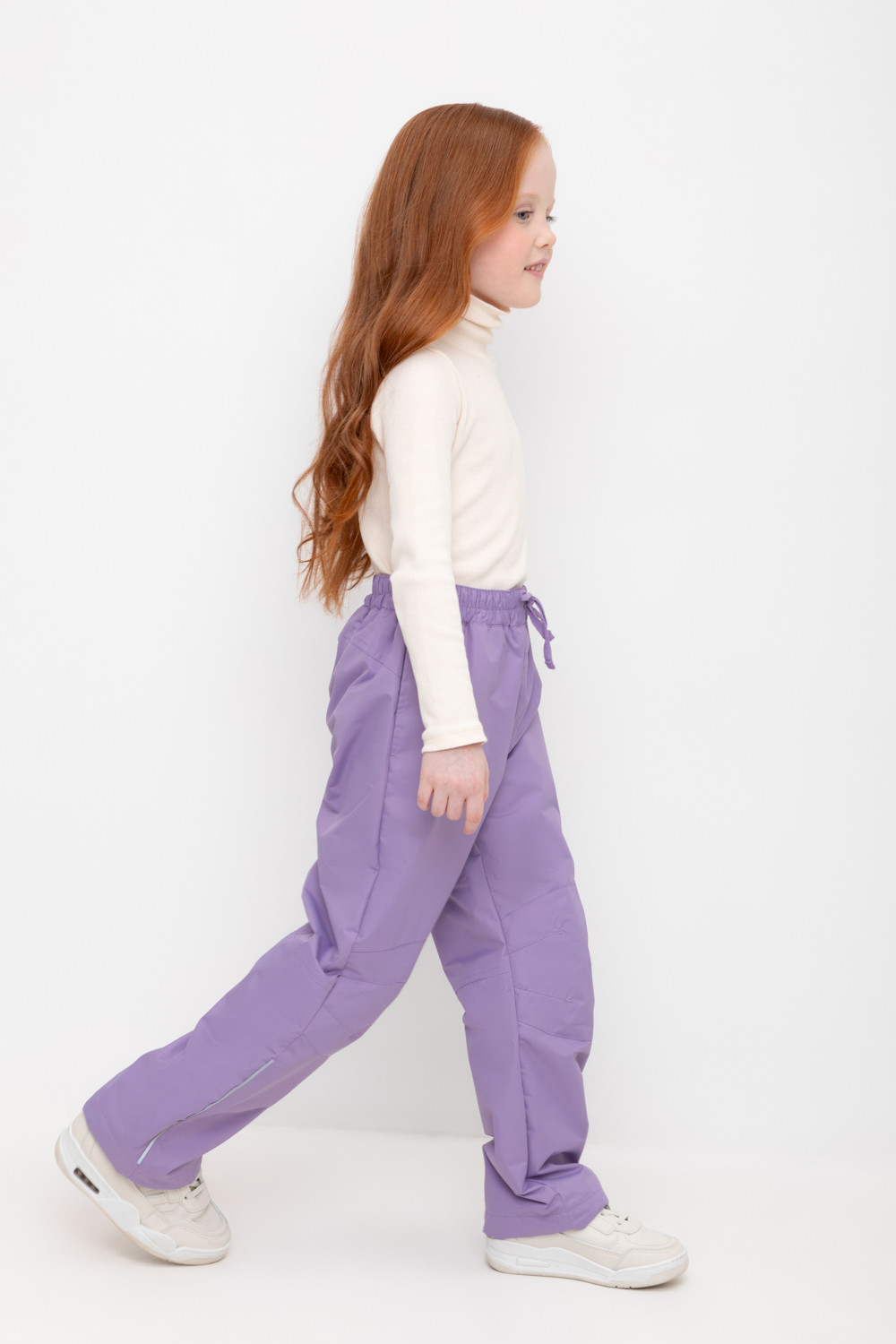 Ветровочные брюки из мембранной, фактурной ткани с дополнительной тефлоновой обработкой. Данный вид обработки предохраняет изделие от загрязнения и лучше отводит влагу. Подклад из 100% хлопка. Область коленей дополнительно усилена деталями из основной ткани. В поясе предусмотрен шнурок для регулировки ширины изделия. Во всех изделиях верхнего ассортимента для безопасности ребенка предусмотрены светоотражающие элементы.