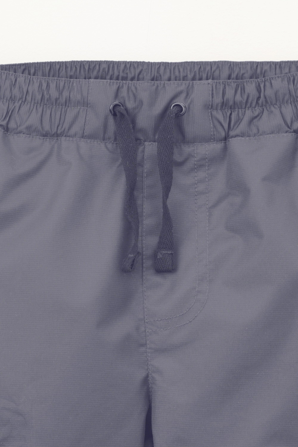 Ветровочные брюки из мембранной, фактурной ткани с дополнительной тефлоновой обработкой. Данный вид обработки предохраняет изделие от загрязнения и лучше отводит влагу. Подклад из 100% хлопка. Область коленей дополнительно усилена деталями из основной ткани. В поясе предусмотрен шнурок для регулировки ширины изделия. Во всех изделиях верхнего ассортимента для безопасности ребенка предусмотрены светоотражающие элементы.