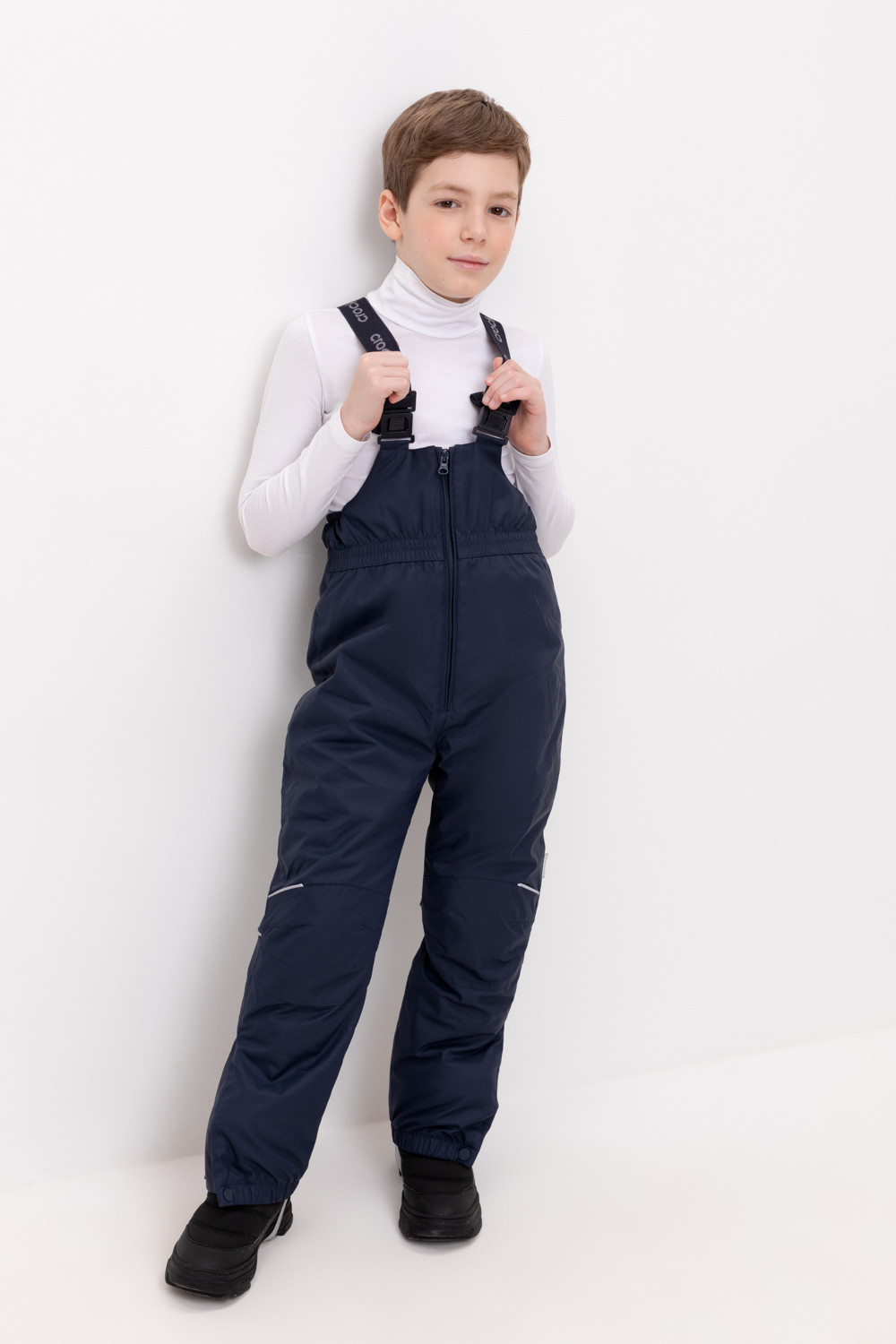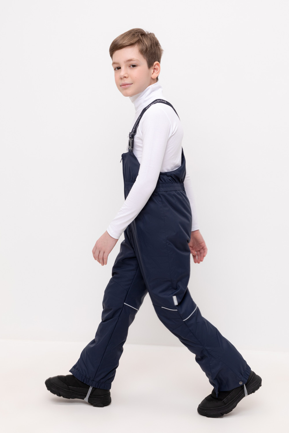 • Благодаря высокой талии и подтяжкам с регулировкой по росту брюки идеально сидят на фигуре.