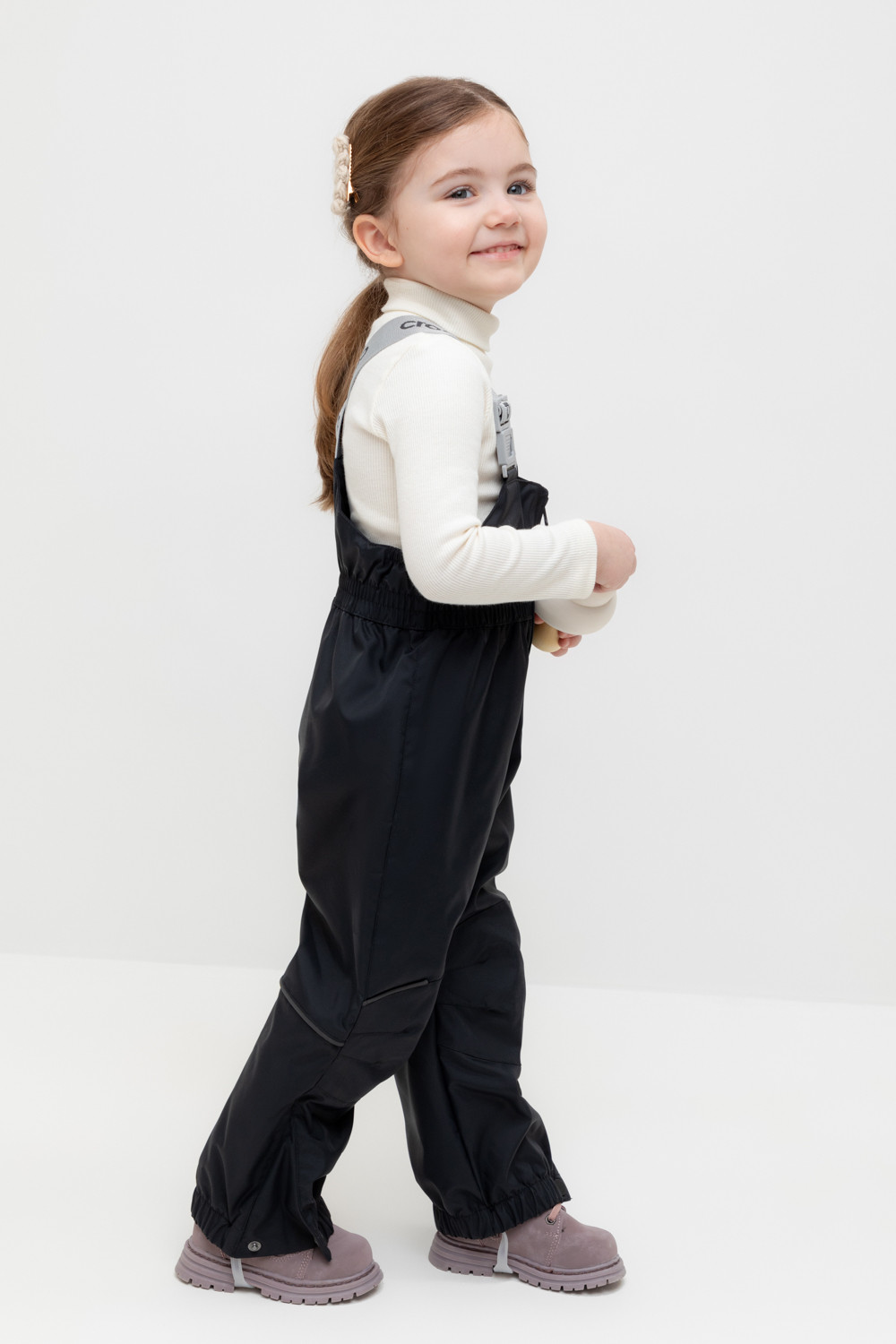Демисезонный полукомбинезон детский с утеплителем 60г/м2. Выполнен из мембранной ткани с дополнительной тефлоновой обработкой. Данный вид обработки предохраняет изделие от загрязнения и лучше отводит влагу. Подклад из 100% полиэстра. Эластичные лямки для удобства регулируются по длине. Область коленей дополнительно усилена деталями из основной ткани. Низ на резинке, регулируется по ширине при помощи кнопки. Для фиксации полукомбинезона используются съемные силиконовые штрипки. Во всех изделиях верхнего ассортимента для безопасности ребенка предусмотрены светоотражающие элементы.