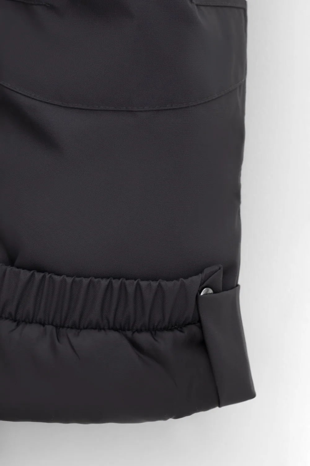 Демисезонный полукомбинезон детский с утеплителем 60г/м2. Выполнен из мембранной ткани с дополнительной тефлоновой обработкой. Данный вид обработки предохраняет изделие от загрязнения и лучше отводит влагу. Подклад из 100% полиэстра. Эластичные лямки для удобства регулируются по длине. Область коленей дополнительно усилена деталями из основной ткани. Низ на резинке, регулируется по ширине при помощи кнопки. Для фиксации полукомбинезона используются съемные силиконовые штрипки. Во всех изделиях верхнего ассортимента для безопасности ребенка предусмотрены светоотражающие элементы.