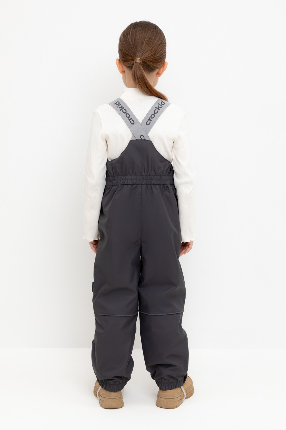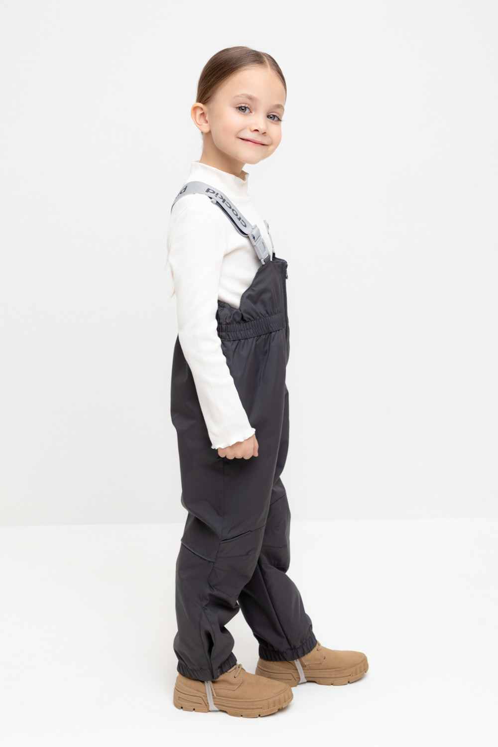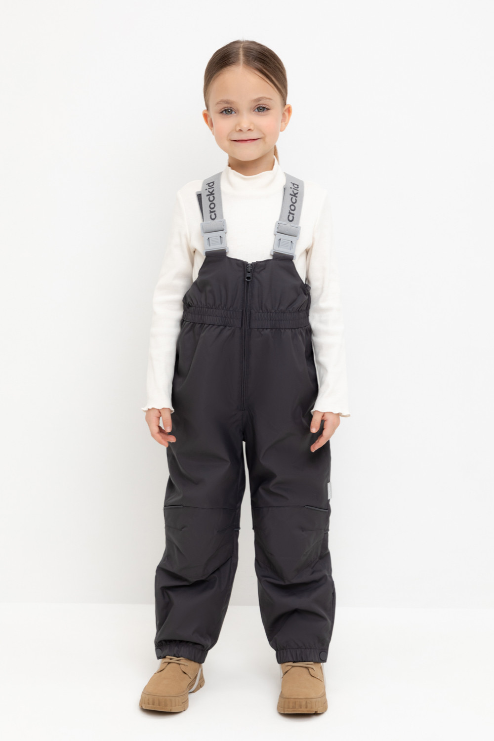 Демисезонный полукомбинезон детский с утеплителем 60г/м2. Выполнен из мембранной ткани с дополнительной тефлоновой обработкой. Данный вид обработки предохраняет изделие от загрязнения и лучше отводит влагу. Подклад из 100% полиэстра. Эластичные лямки для удобства регулируются по длине. Область коленей дополнительно усилена деталями из основной ткани. Низ на резинке, регулируется по ширине при помощи кнопки. Для фиксации полукомбинезона используются съемные силиконовые штрипки. Во всех изделиях верхнего ассортимента для безопасности ребенка предусмотрены светоотражающие элементы.