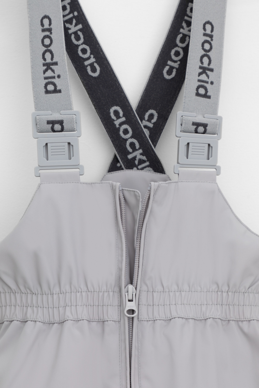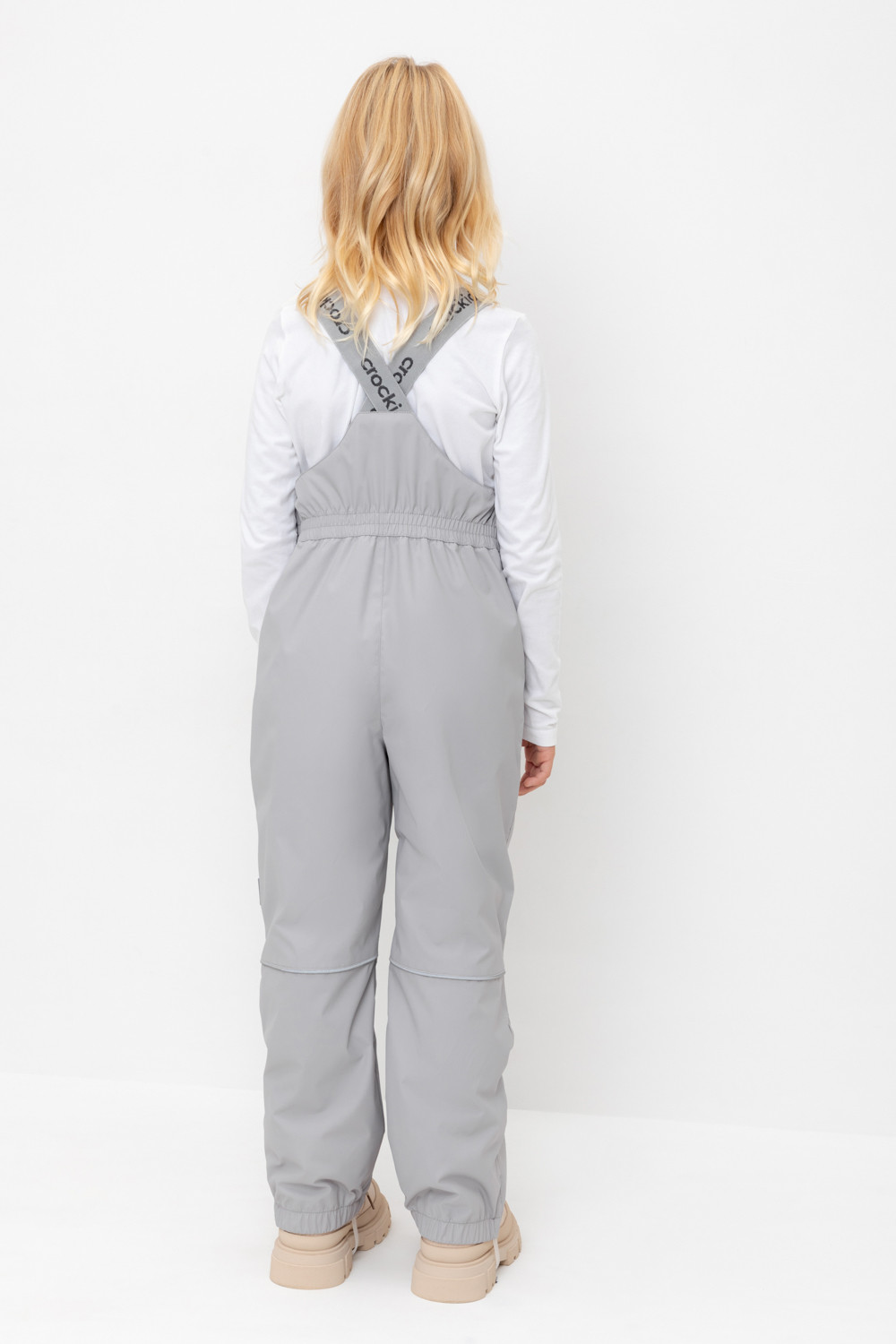 Демисезонный полукомбинезон детский с утеплителем 60г/м2. Выполнен из мембранной ткани с дополнительной тефлоновой обработкой. Данный вид обработки предохраняет изделие от загрязнения и лучше отводит влагу. Подклад из 100% полиэстра. Эластичные лямки для удобства регулируются по длине. Область коленей дополнительно усилена деталями из основной ткани. Низ на резинке, регулируется по ширине при помощи кнопки. Для фиксации полукомбинезона используются съемные силиконовые штрипки. Во всех изделиях верхнего ассортимента для безопасности ребенка предусмотрены светоотражающие элементы.