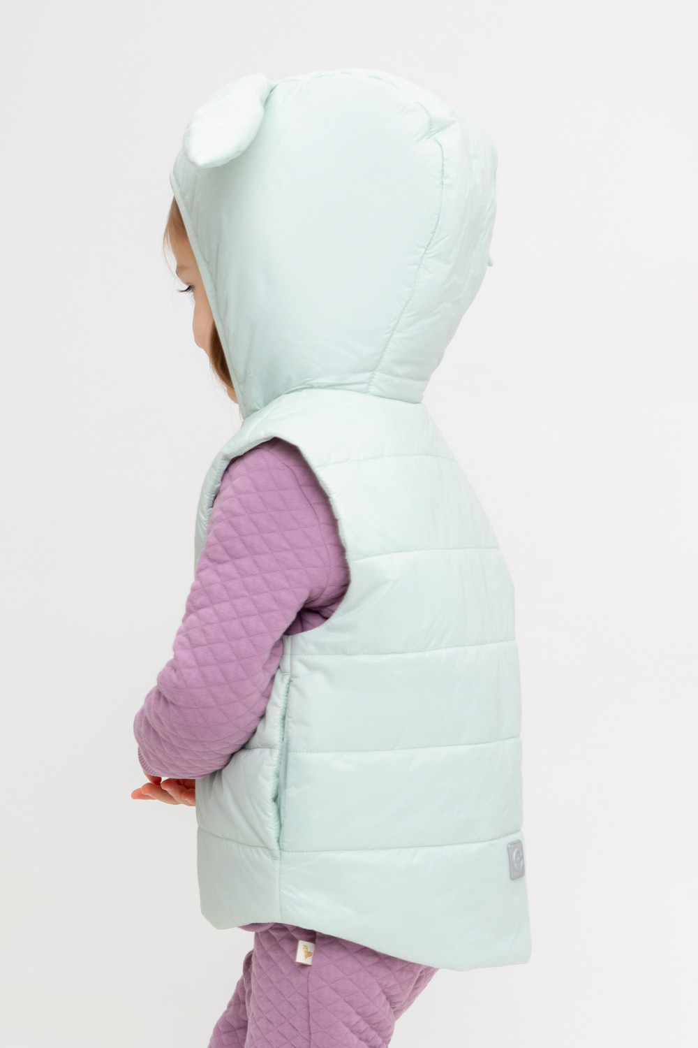 Стеганый жилет с капюшоном для девочки с утеплителем Fellex®: 120 г/м2. Выполнен из мембранной ткани с дополнительной тефлоновой обработкой. Данный вид обработки предохраняет изделие от загрязнения и лучше отводит влагу. Подклад: 60% хлопок и 40% полиэстер (на размерах 86-98), 100% полиэстер (на размерах 98-128). У изделия предусмотрена защита подбородка. По бокам два кармана. Во всех изделиях верхнего ассортимента для безопасности ребенка предусмотрены светоотражающие элементы.