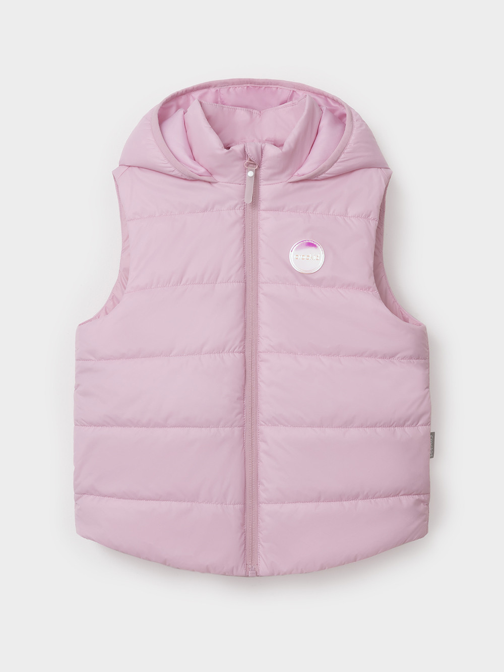 Стёганый жилет с капюшоном для девочки с утеплителем Fellex®, 120 г/м2. Выполнен из мембранной ткани с дополнительной тефлоновой обработкой. Данный вид обработки предохраняет изделие от загрязнения и лучше отводит влагу. Подклад из хлопка в размерах 86-92 и 92-98 и из полиэстера в размерах от 98-104 до 122-128. Капюшон не снимается, обработан по краю эластичным кантом для лучшего прилегания. Изделие застёгивается на молнию, предусмотрена защита подбородка. Два кармана по бокам без застёжек. Во всех изделиях верхнего ассортимента для безопасности ребёнка предусмотрены светоотражающие элементы.
