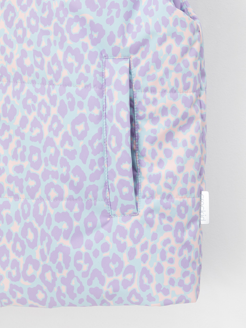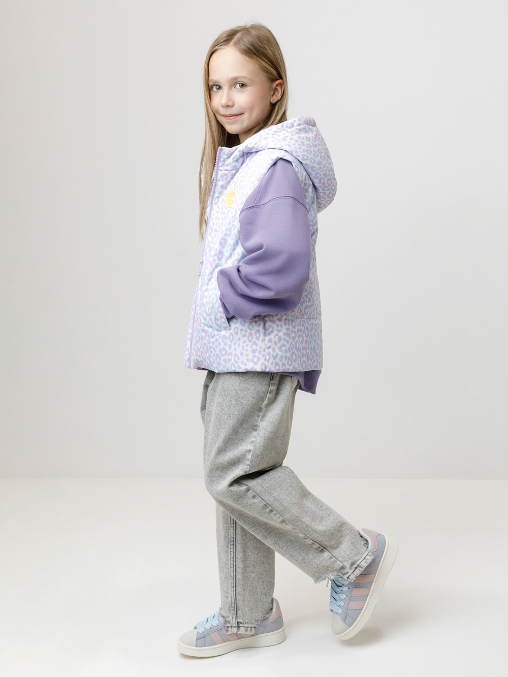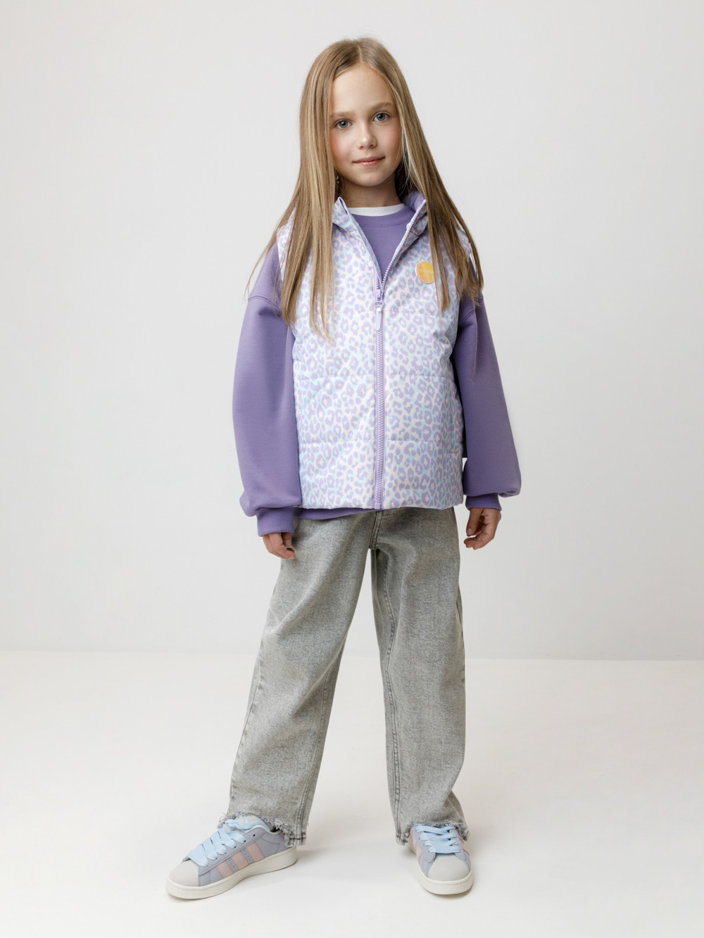 Стёганый жилет с капюшоном для девочки с утеплителем Fellex®, 120 г/м2. Выполнен из мембранной ткани с дополнительной тефлоновой обработкой. Данный вид обработки предохраняет изделие от загрязнения и лучше отводит влагу. Подклад из 100% полиэстера. Капюшон не снимается. Изделие застёгивается на молнию, предусмотрена защита подбородка. Два кармана по бокам без застёжек. Во всех изделиях верхнего ассортимента для безопасности ребёнка предусмотрены светоотражающие элементы.