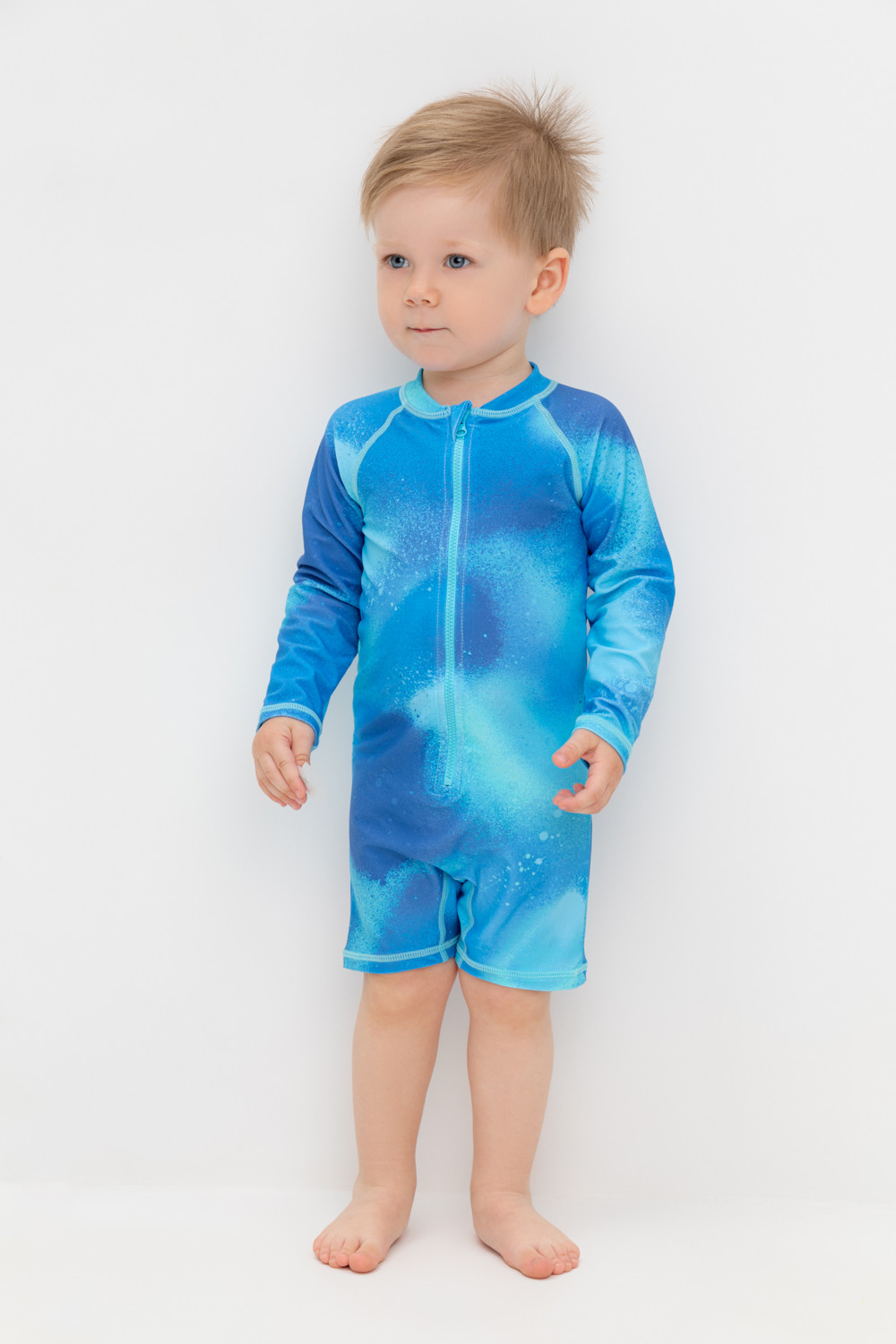 Купальник для мальчика. Застегивается спереди на замок. На замке предусмотрена защита для подбородка. Оригинальная набивка выполнена из стойких гипоаллергенных красителей.