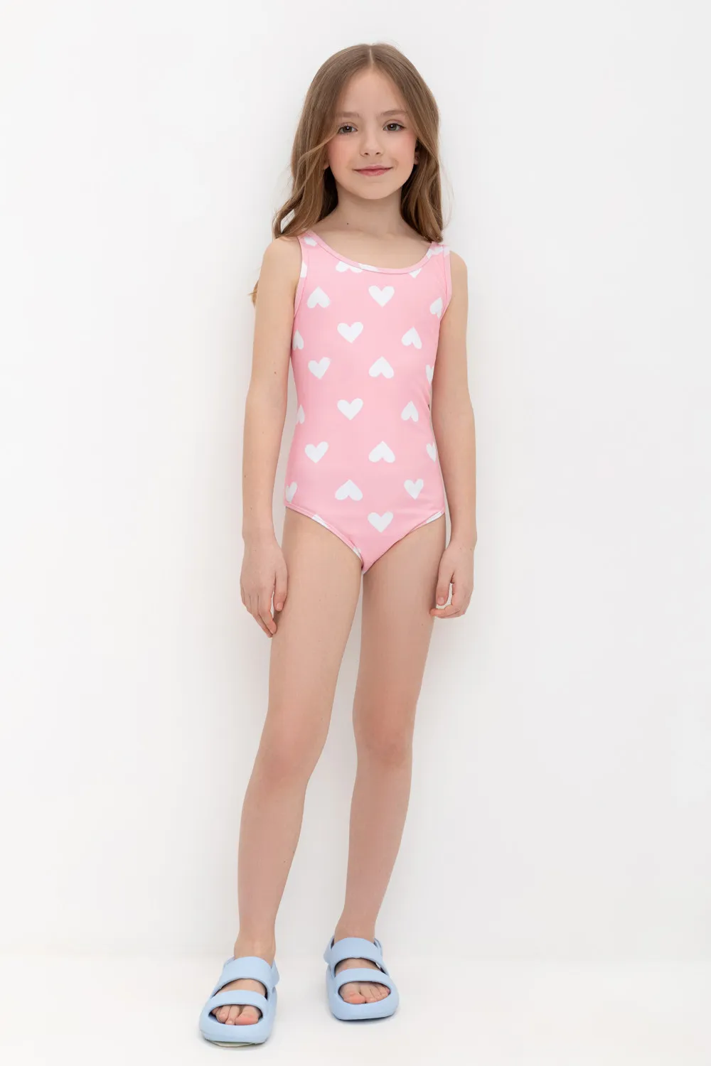 Слитный купальник на лямках для девочки. Оригинальная набивка выполнен из стойких гипоаллергенных красителей.