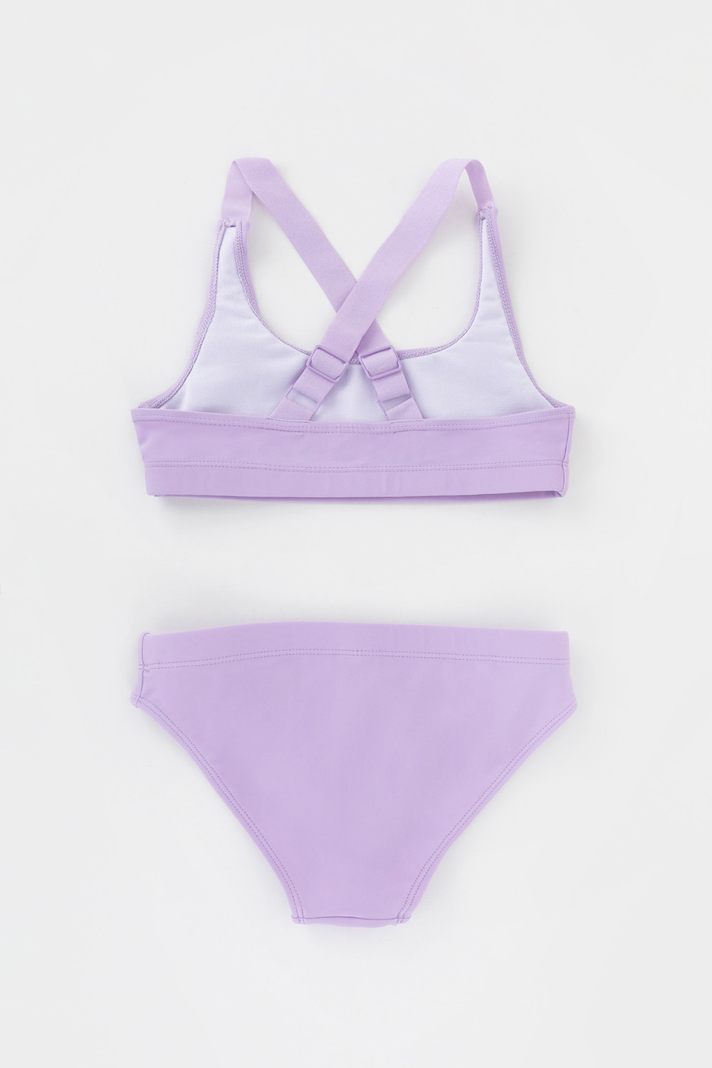 Раздельный купальник для девочки. Топ на эластичных лямках с регуляторами и плавки на резинке .