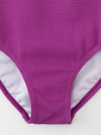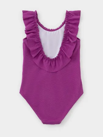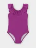 Слитный купальник на лямках для девочки. Украшен оборками. Внутри подклад.