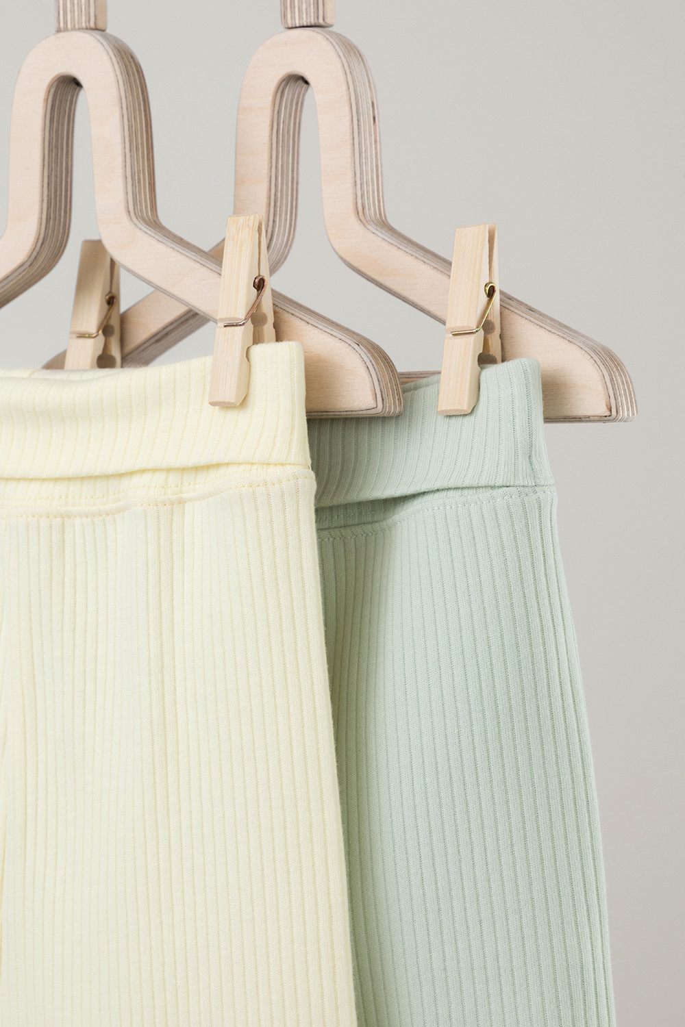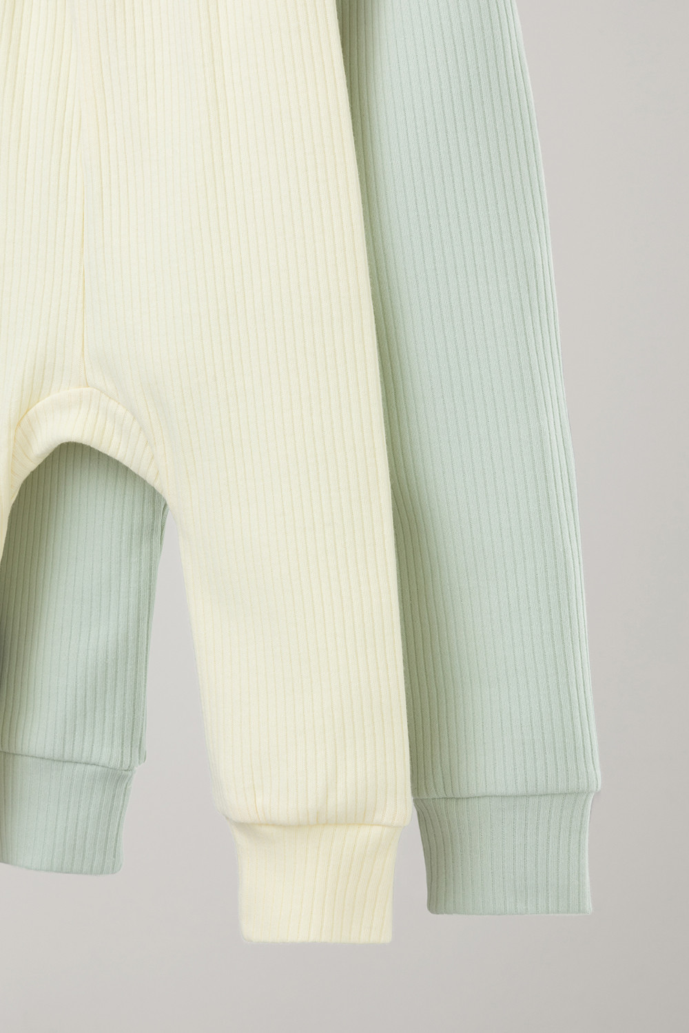 Брюки для новорождённых из мягкого эластичного трикотажа, произведённого из натурального хлопка. В упаковке 2 штуки. Пояс с отворотом на резинке. Все трикотажные полотна производятся в соответствии с нормами Швейцарского сертификата ЭкоТекс.