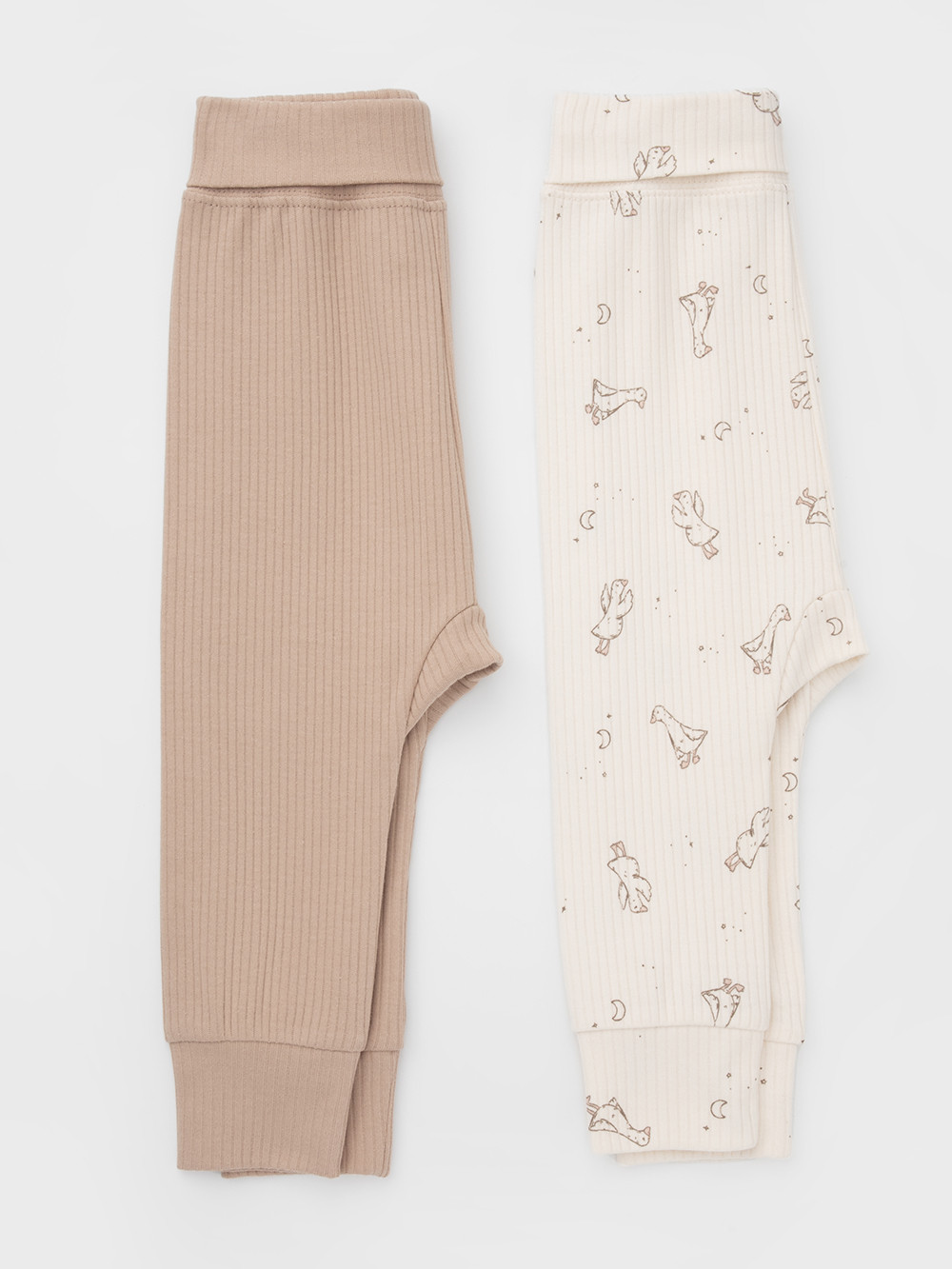 Брюки для новорождённых из мягкого эластичного трикотажа, произведённого из натурального хлопка. В упаковке 2 штуки. Пояс с отворотом на резинке. Все трикотажные полотна производятся в соответствии с нормами швейцарского сертификата ЭкоТекс.
