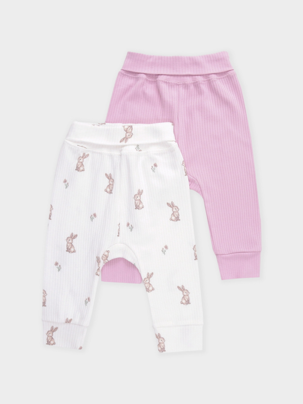 Брюки для новорождённых из мягкого эластичного трикотажа, произведённого из натурального хлопка. В упаковке 2 штуки. Пояс с отворотом на резинке. Все трикотажные полотна производятся в соответствии с нормами швейцарского сертификата ЭкоТекс.